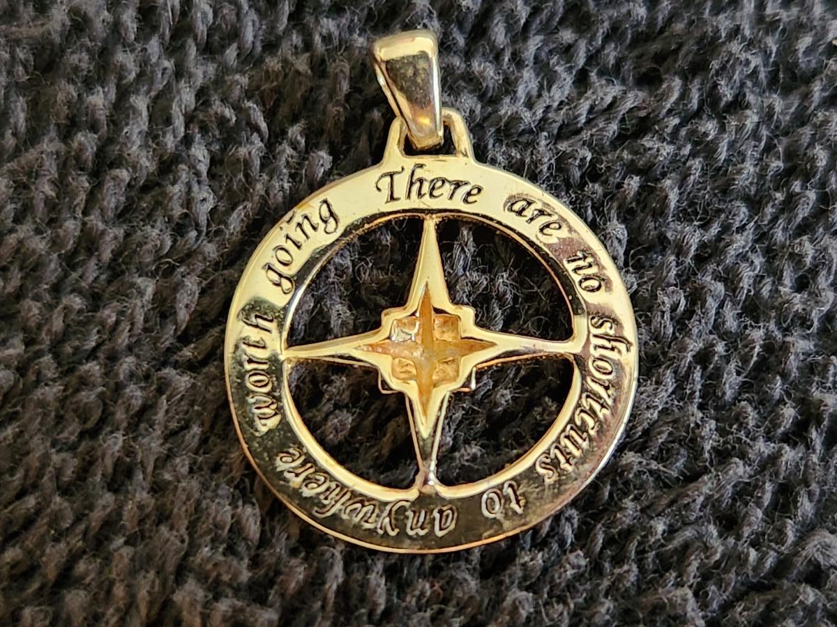 This auction lot is for a Small Gold Charm. This charm is not marked but we believe it to be gold. It reads "There are no shortcuts to anywhere worth going" - ain't that the truth. See photo for size. It weighs about 1.6 grams.