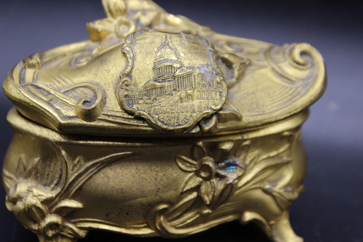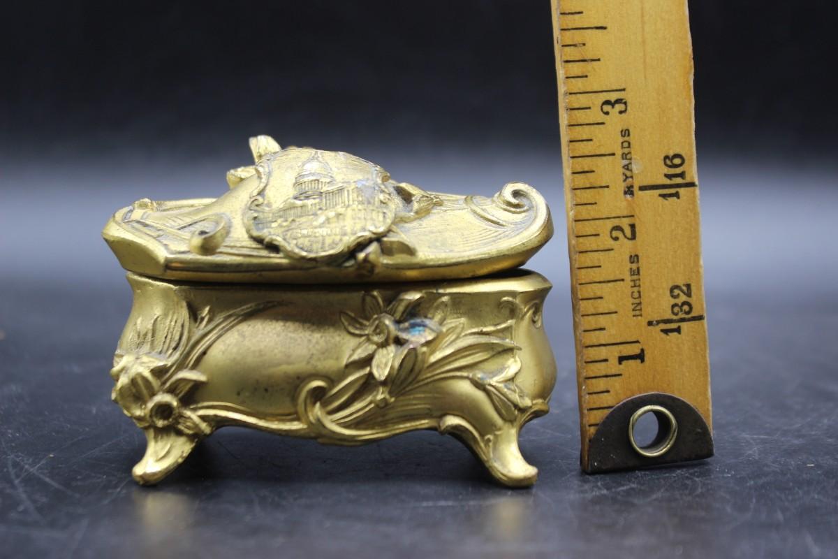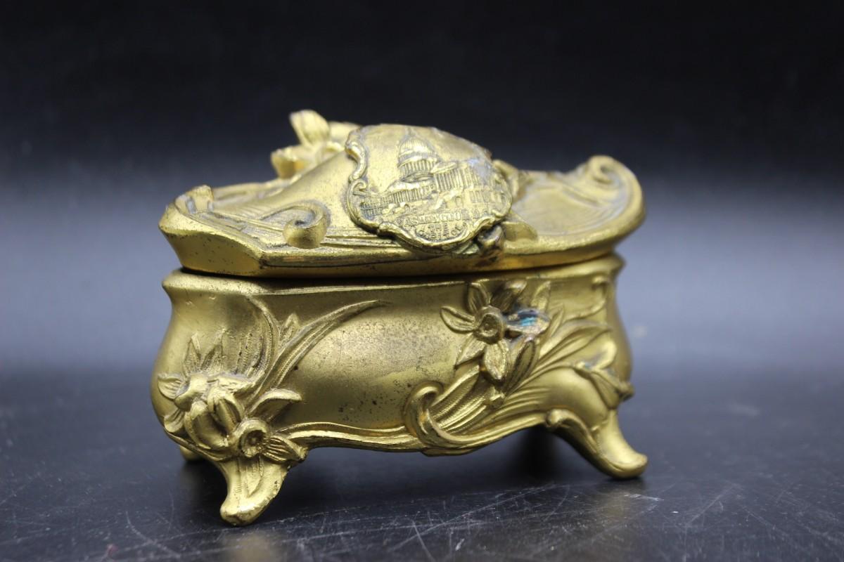 Small Gold Painted Art Nouveau Style Washington DC Trinket Jewelry Box