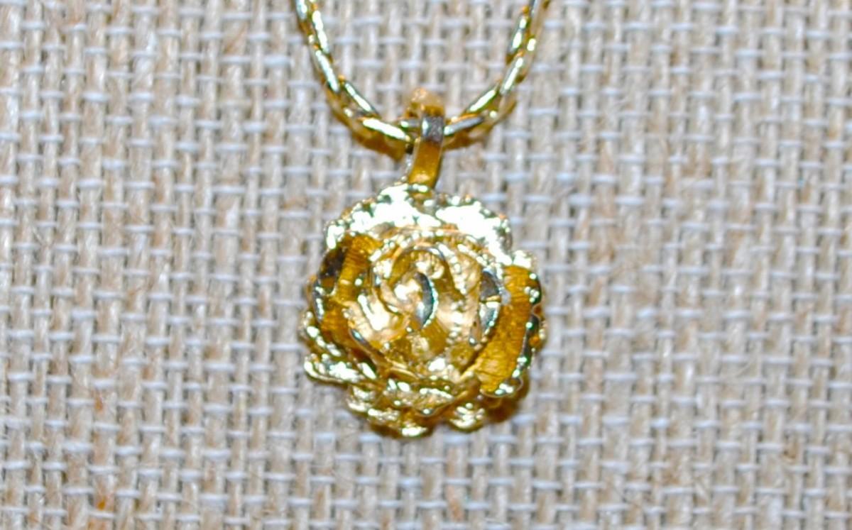 Small "Gold Rose" PENDANT (½" x ½") on a Gold Tone Necklace Chain 24" L