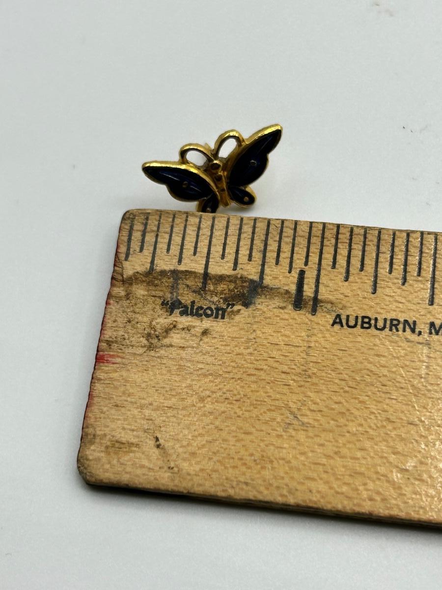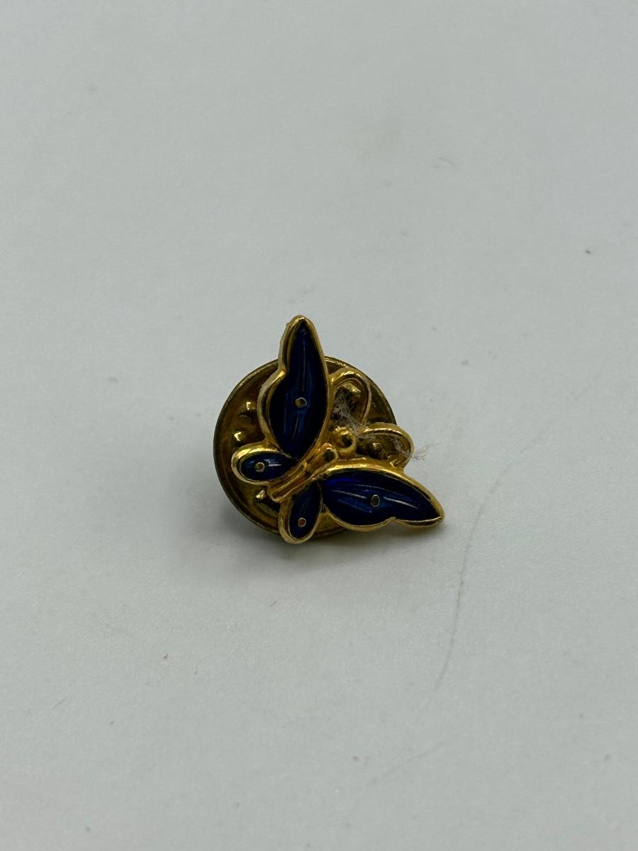 Small Gold Tone and Navy Blue Enamel Butterfly Lapel Pin