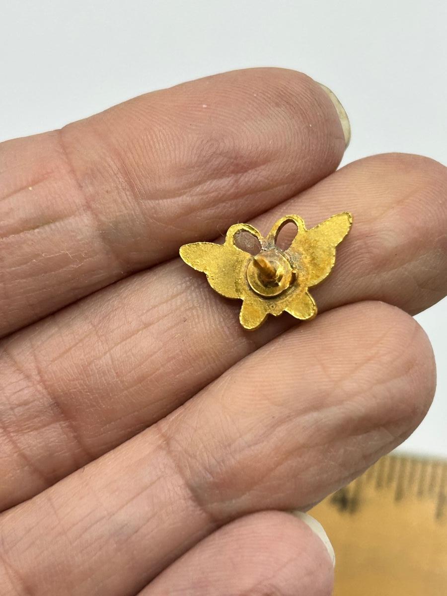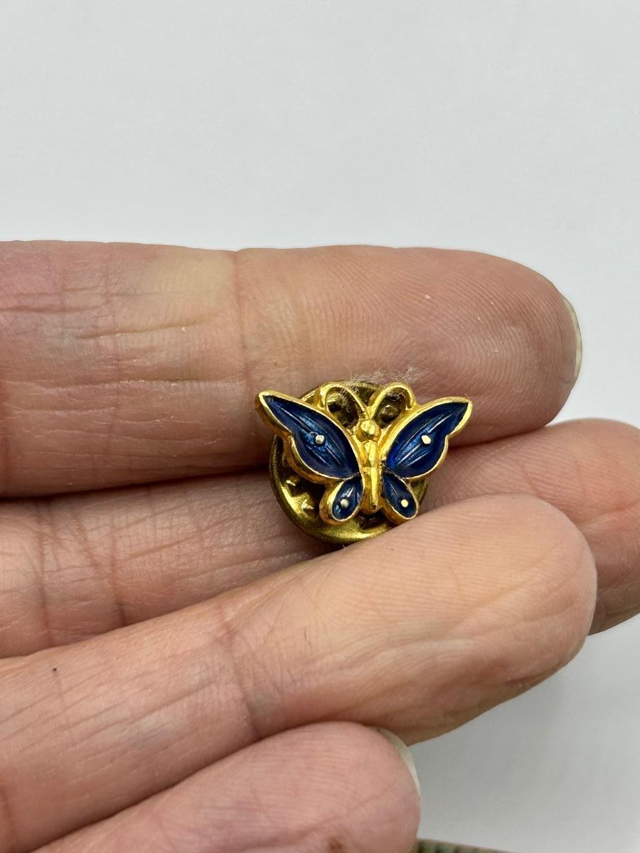 Small Gold Tone and Enamel Butterfly Lapel Pin. In good condition. About 3/4" size.