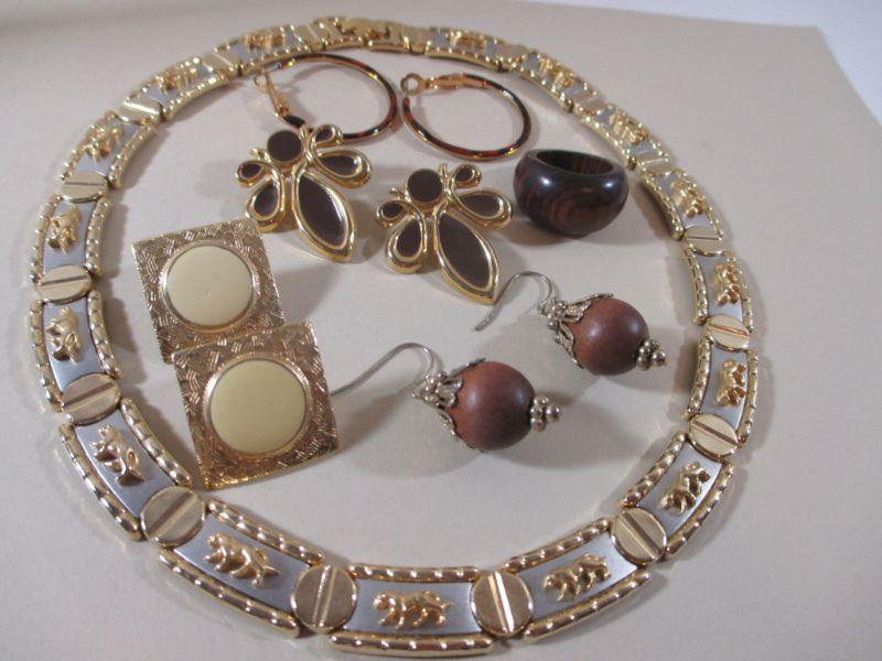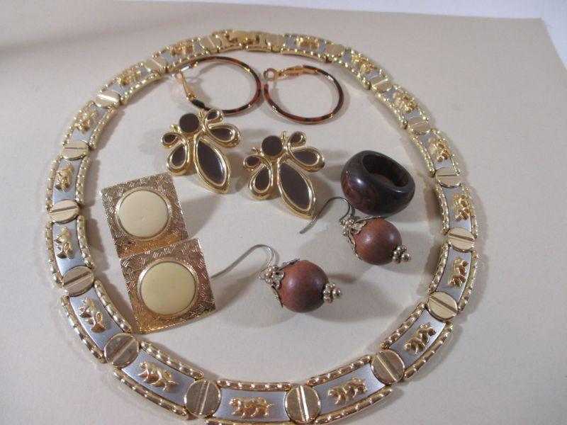 Small Gold Tone Necklace and Earrings and Ring Fashion All Wear good condition