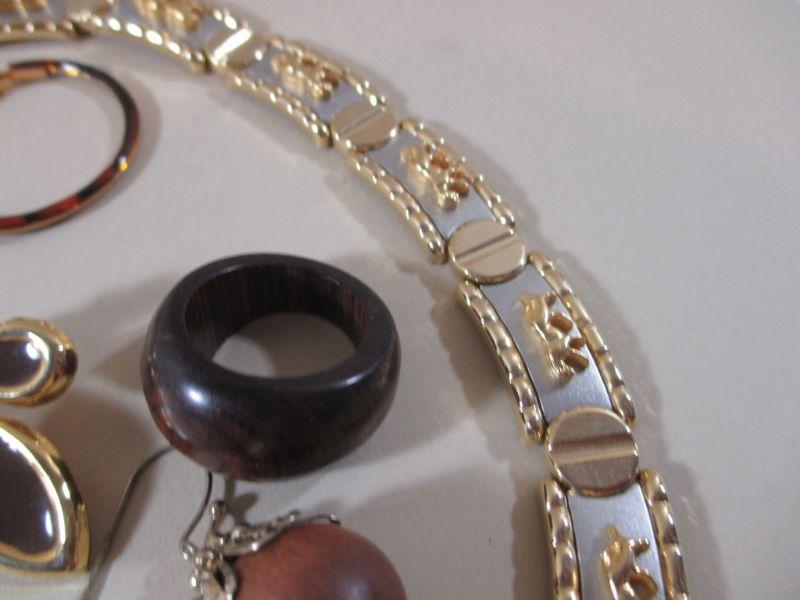 Small Gold Tone Necklace and Earrings and Ring Fashion All Wear