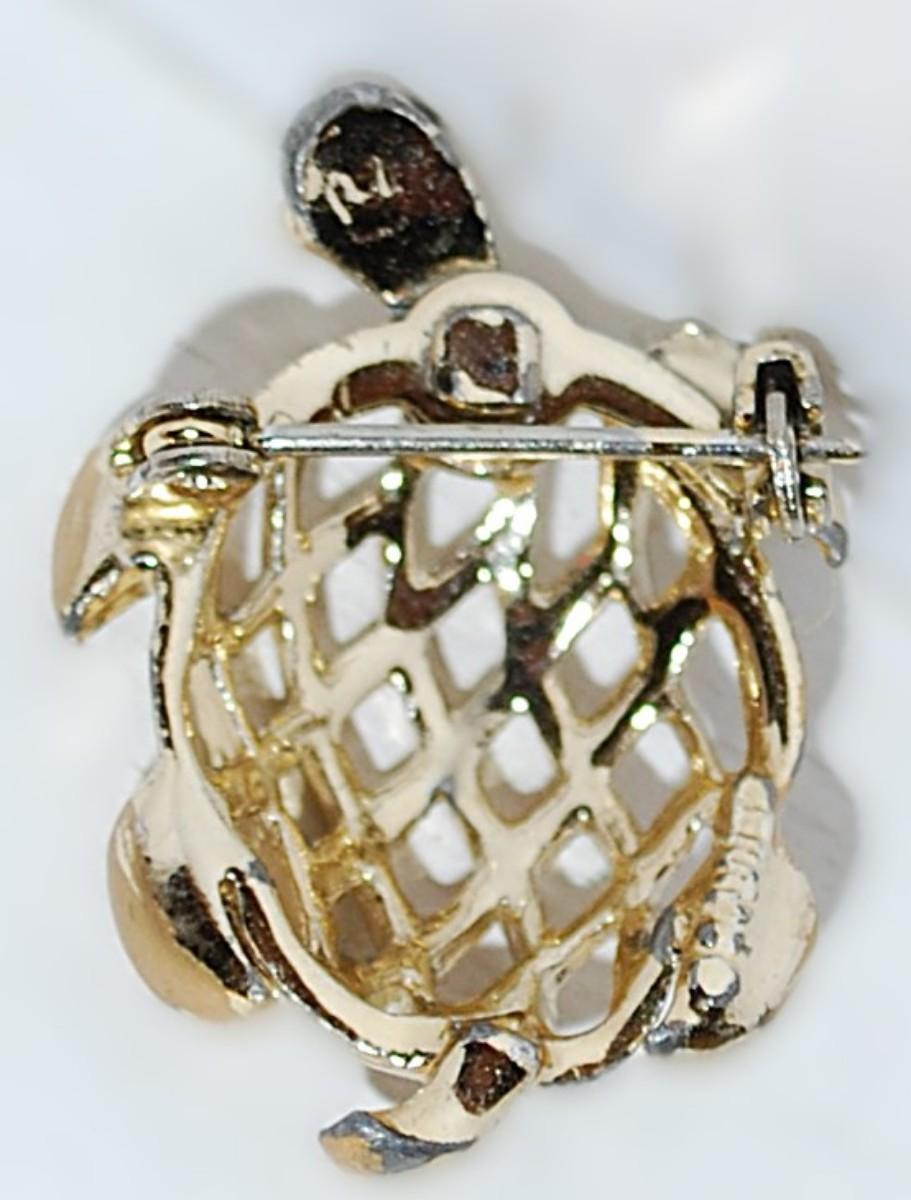 Small GOLD TONE TURTLE BROOCH (1¼" x ¾") with Filigree Style Shell and Silver Tone Pin