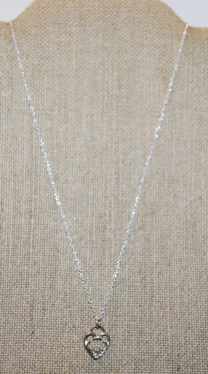 Small Graphic Designed Heart Shaped PENDANT (¾" x ½") on a Silver Tone Adjustable Necklace Chain 14"-18" L