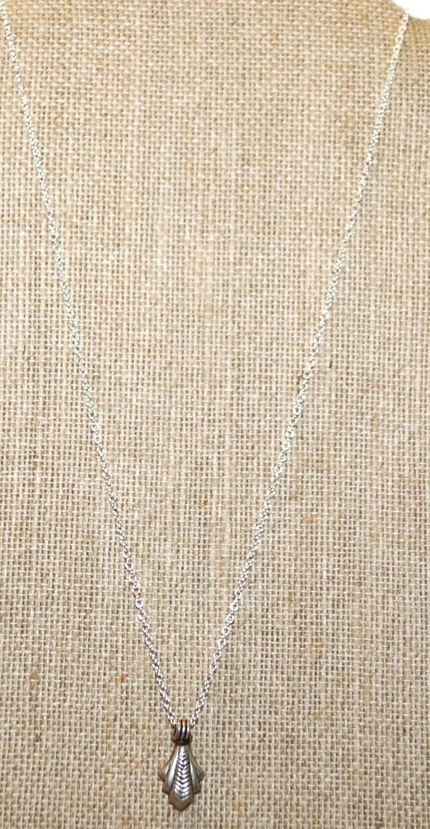 Small Grooved Dangle PENDANT (¾" x ¼") on a Silver Tone Necklace Chain 18" L