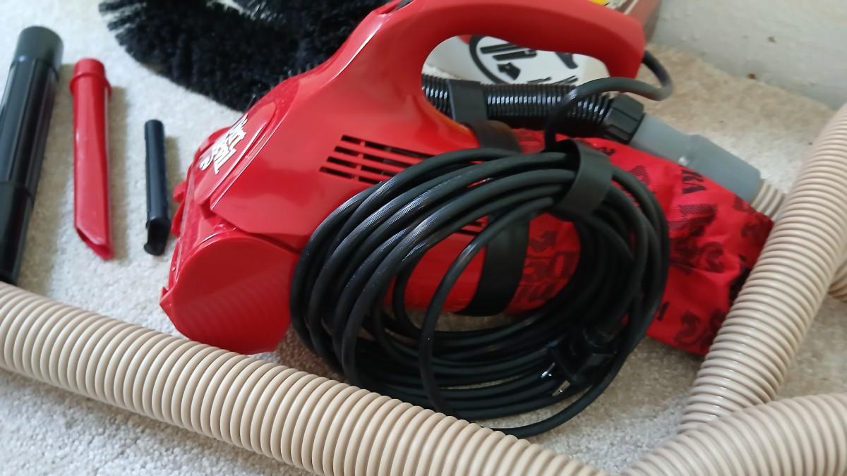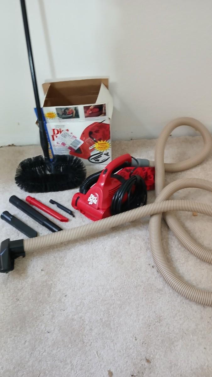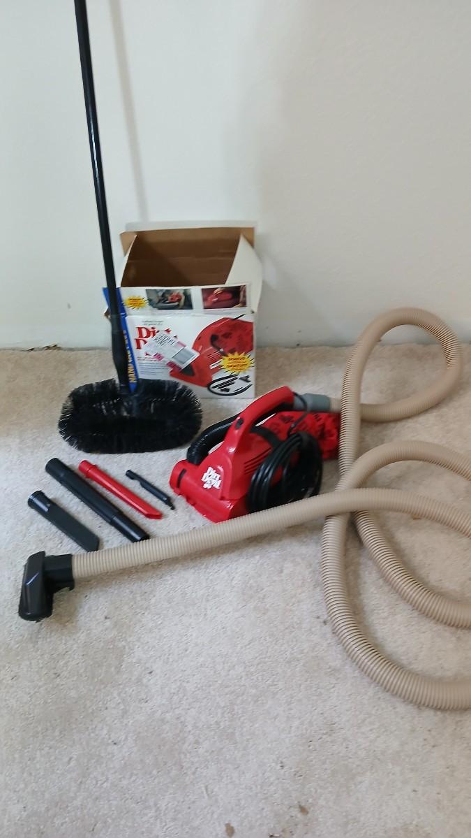 Small handheld Royal Dust Devil vacuum and attachments with ceiling fan brush