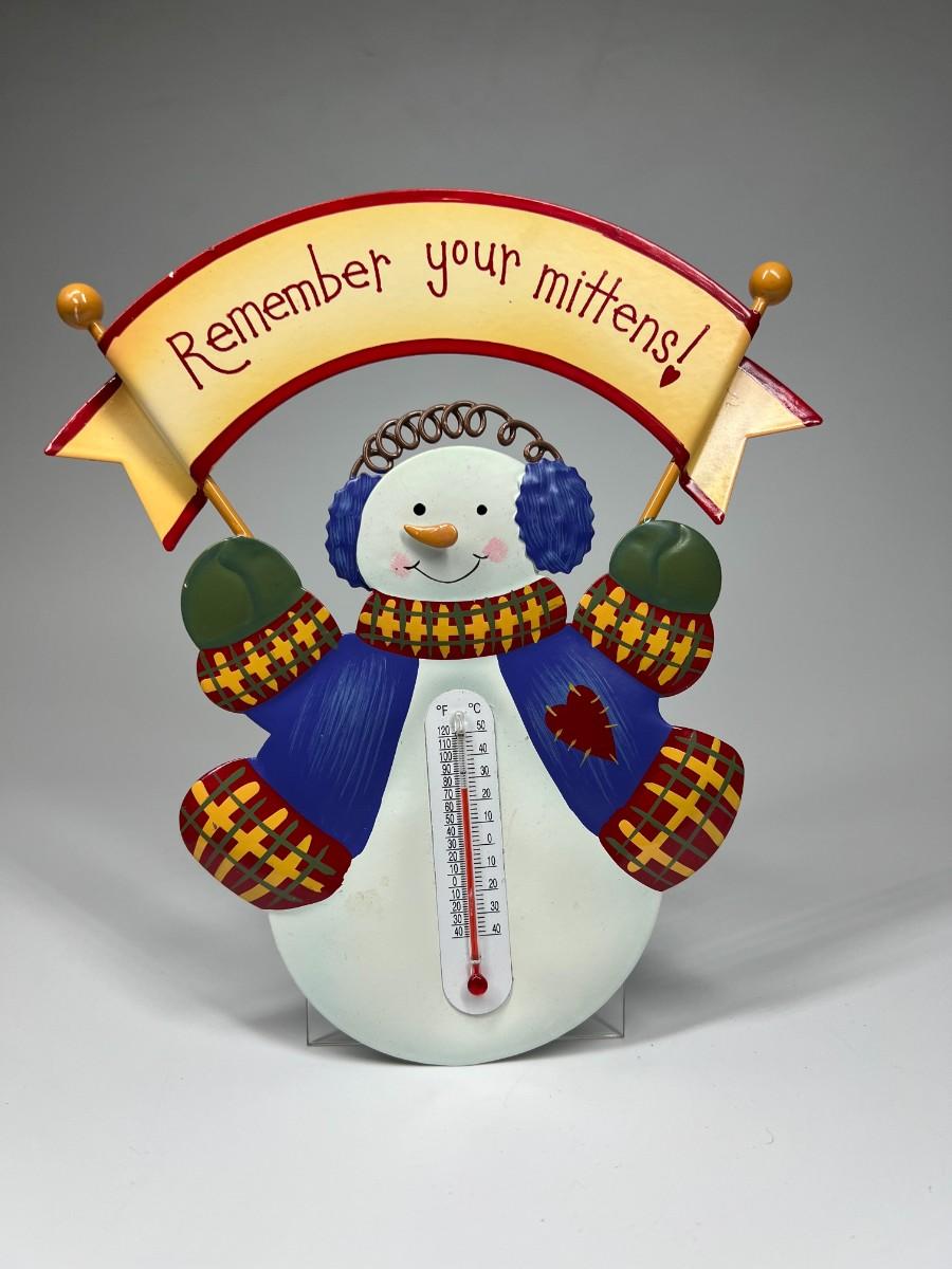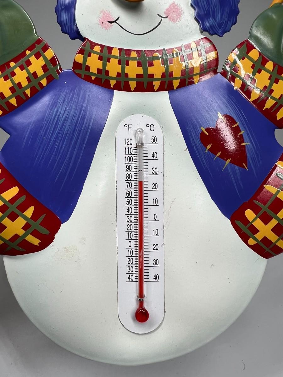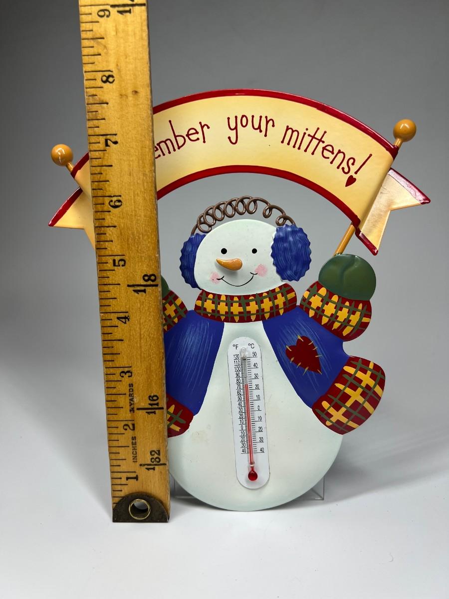 Small Hanging Metal Sign Snowman Holiday Christmas Thermometer