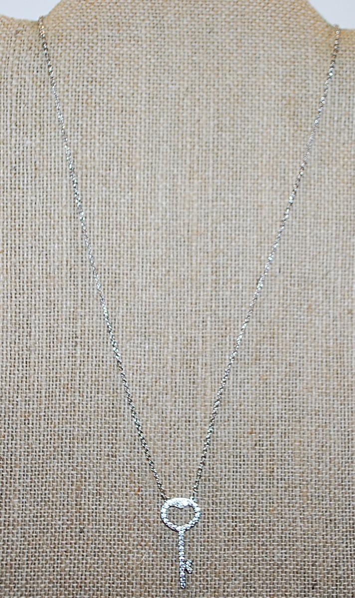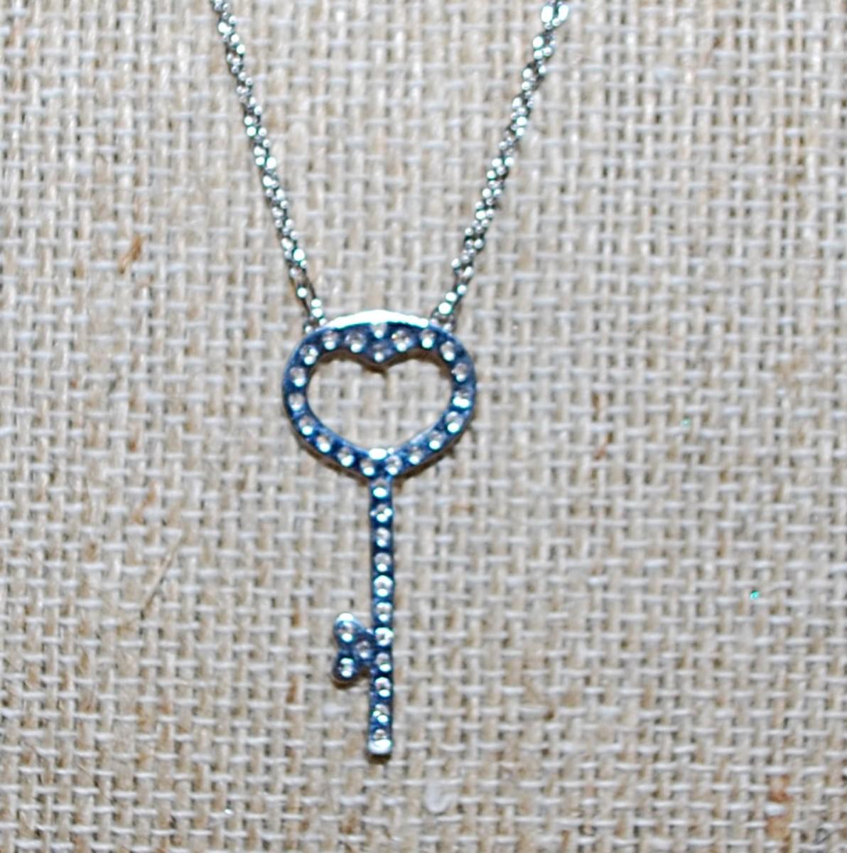 Small HEART Shape KEY PENDANT 1" x ½" on a Silver Tone Necklace Chain 16" L