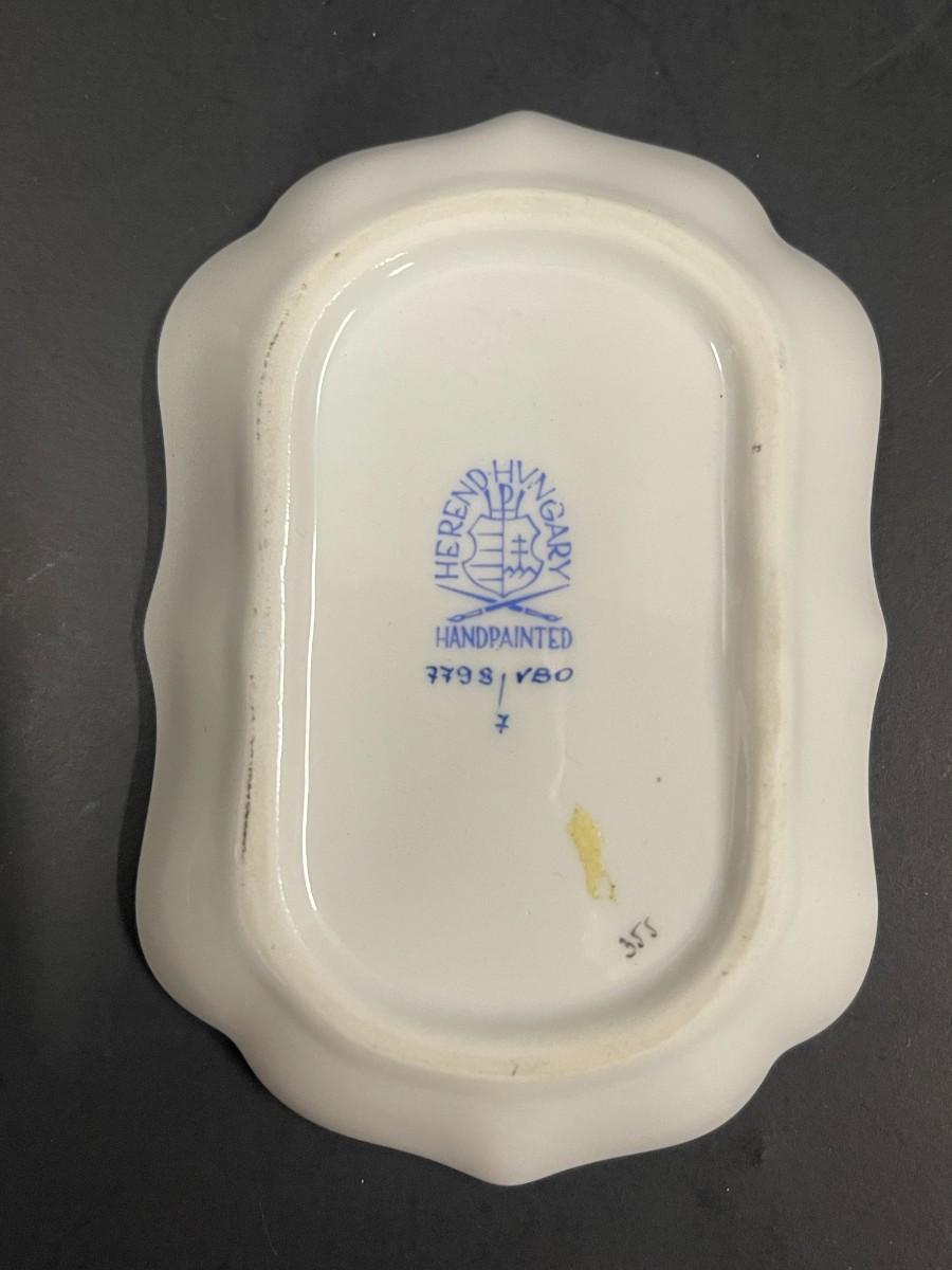 Small, hand painted Herend Hungarian porcelain trinket dish. Excellent condition. 3" x 4".