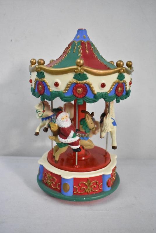 Small Holiday Carousel Decor w/ Santa & Music - Works