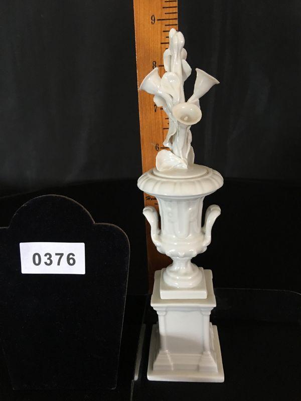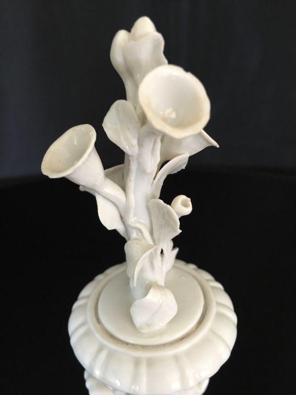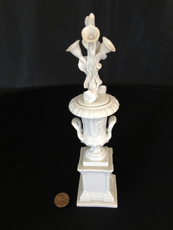 Small intricate Blanc de Chine Capodimonte Urn with Lilies. Pristine! Lot # 376
