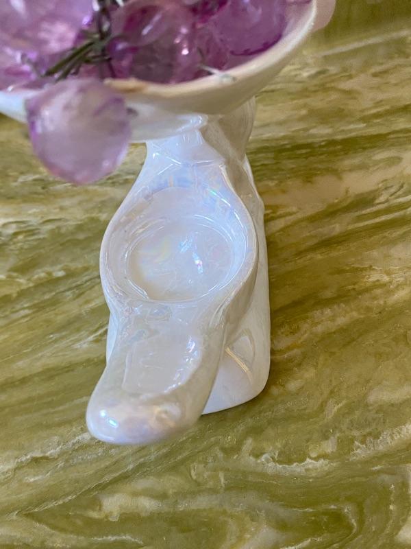 Small Iridescent Angel & Moon Oil Warmer Candle Holder
