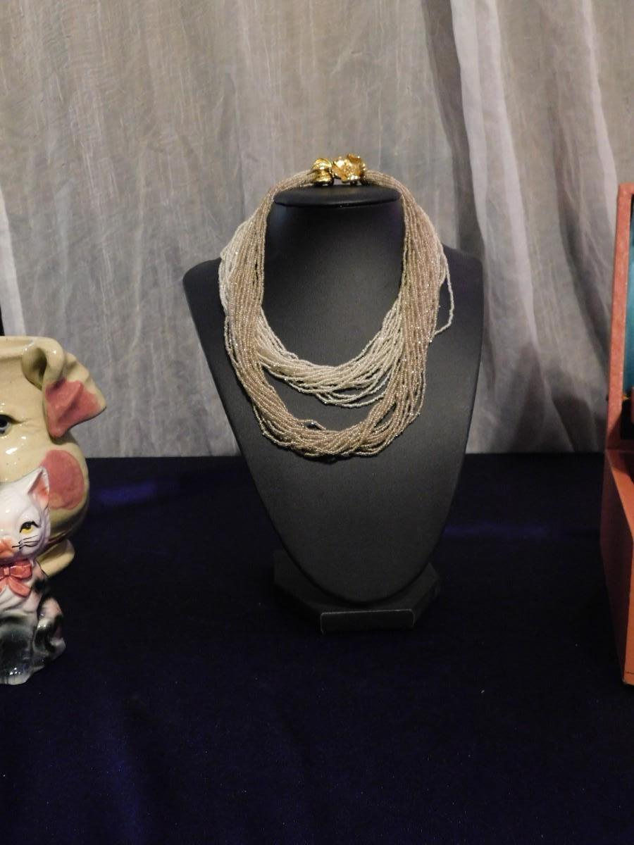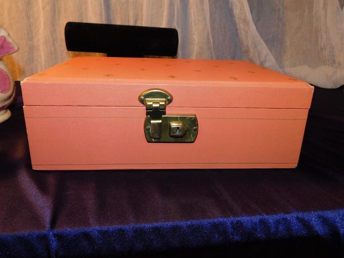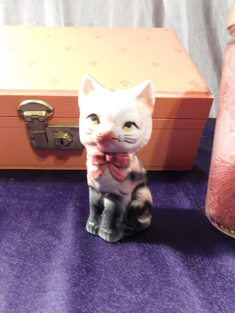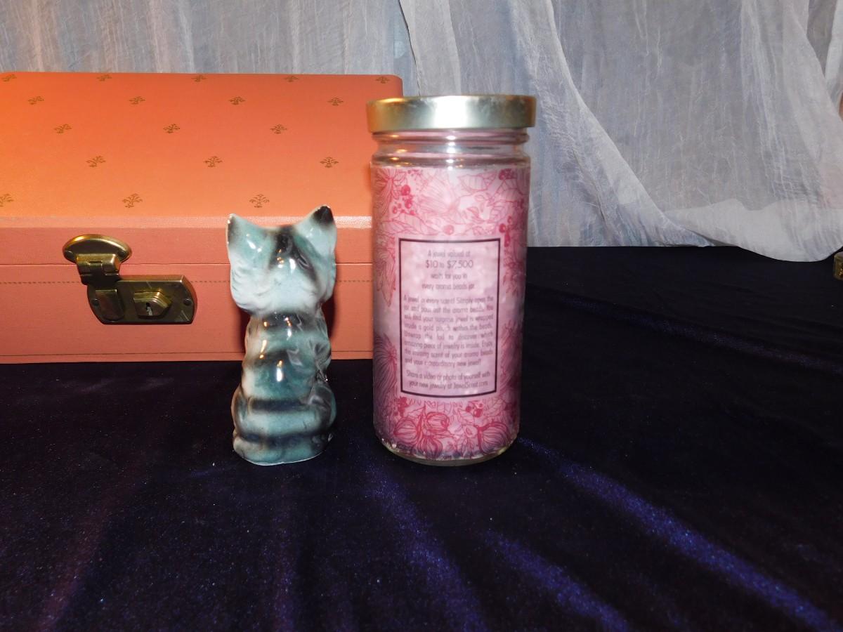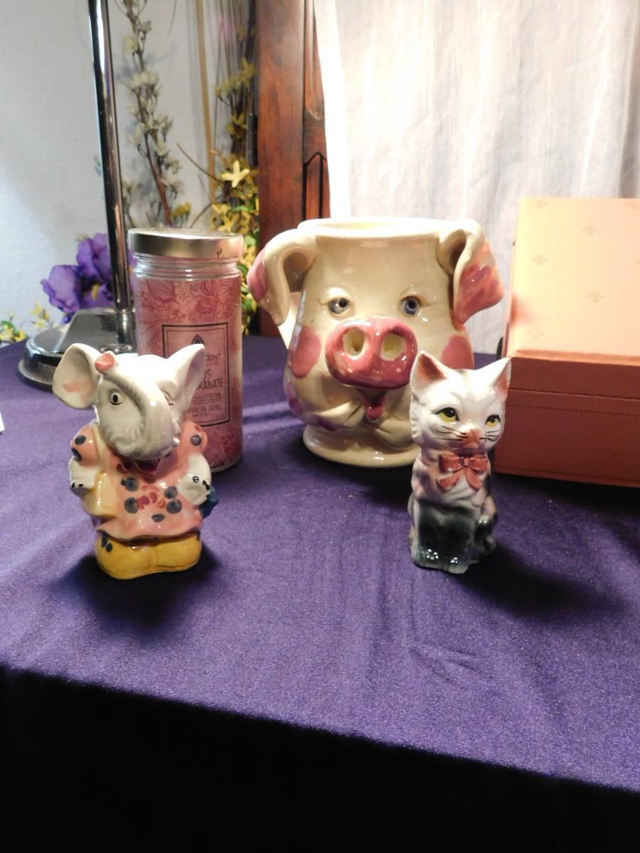 SMALL JEWELRY BOX LOADED WITH COSTUME JEWELRY, FUNNY PIG MUG, PRETTY ELEPHANT, AND MORE