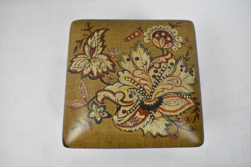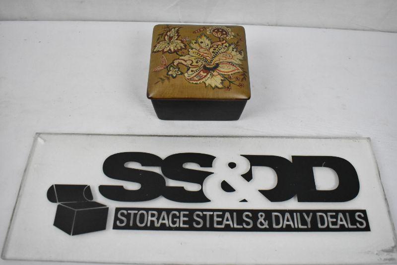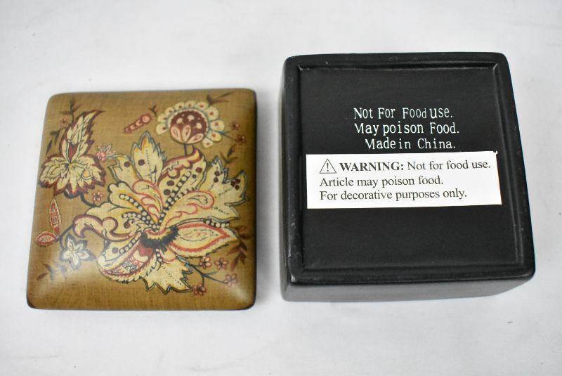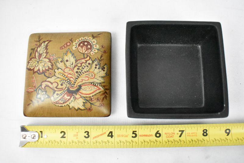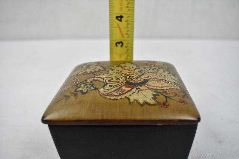 Small Jewelry Box/Trinket Box with Lid. Black, Brown, Red Floral