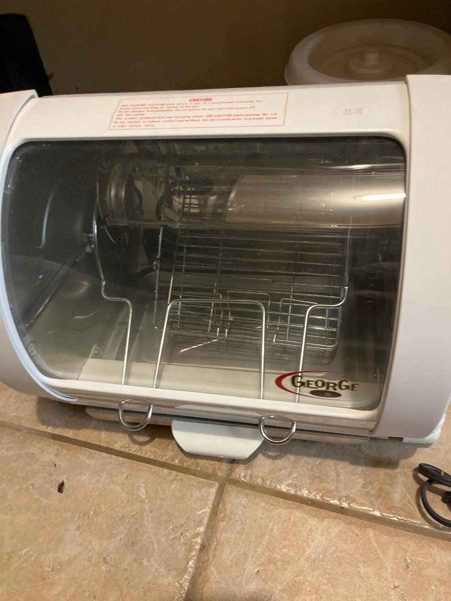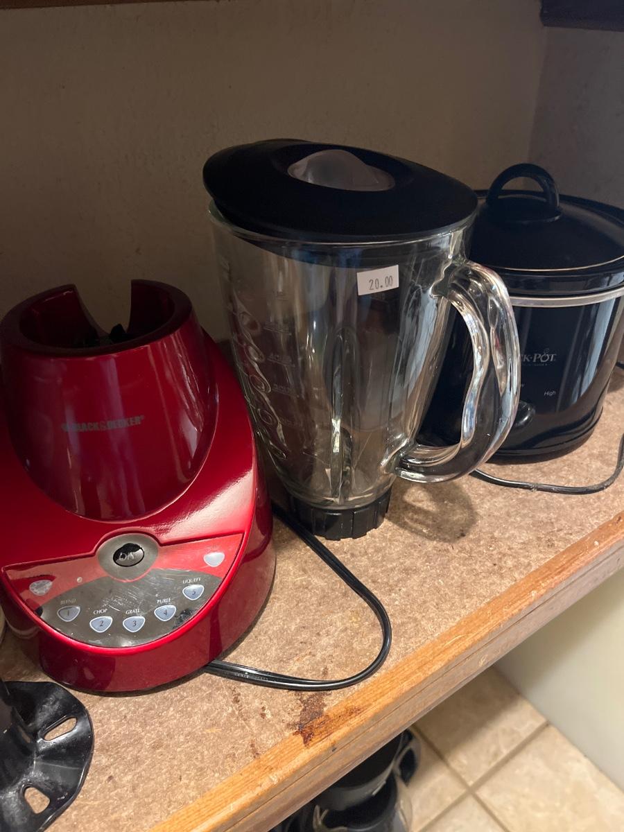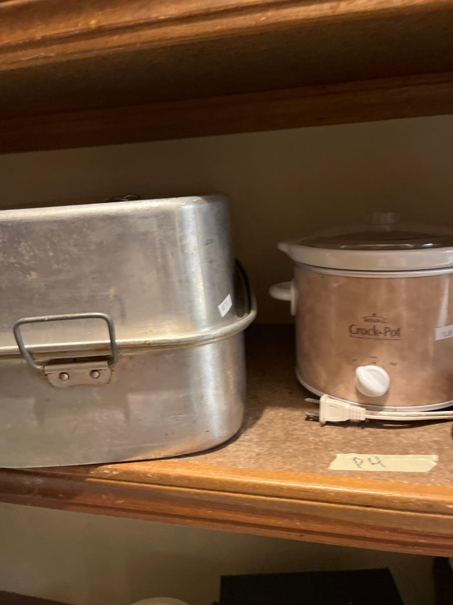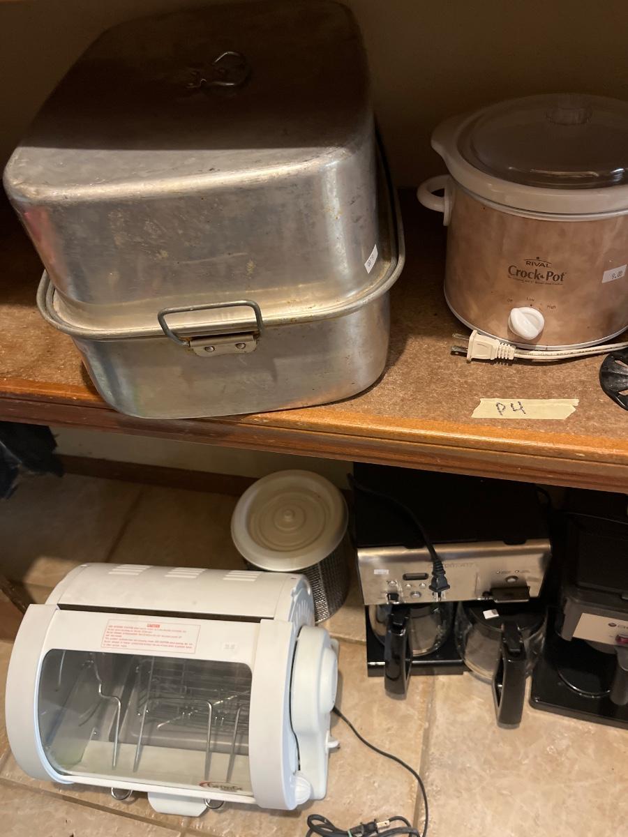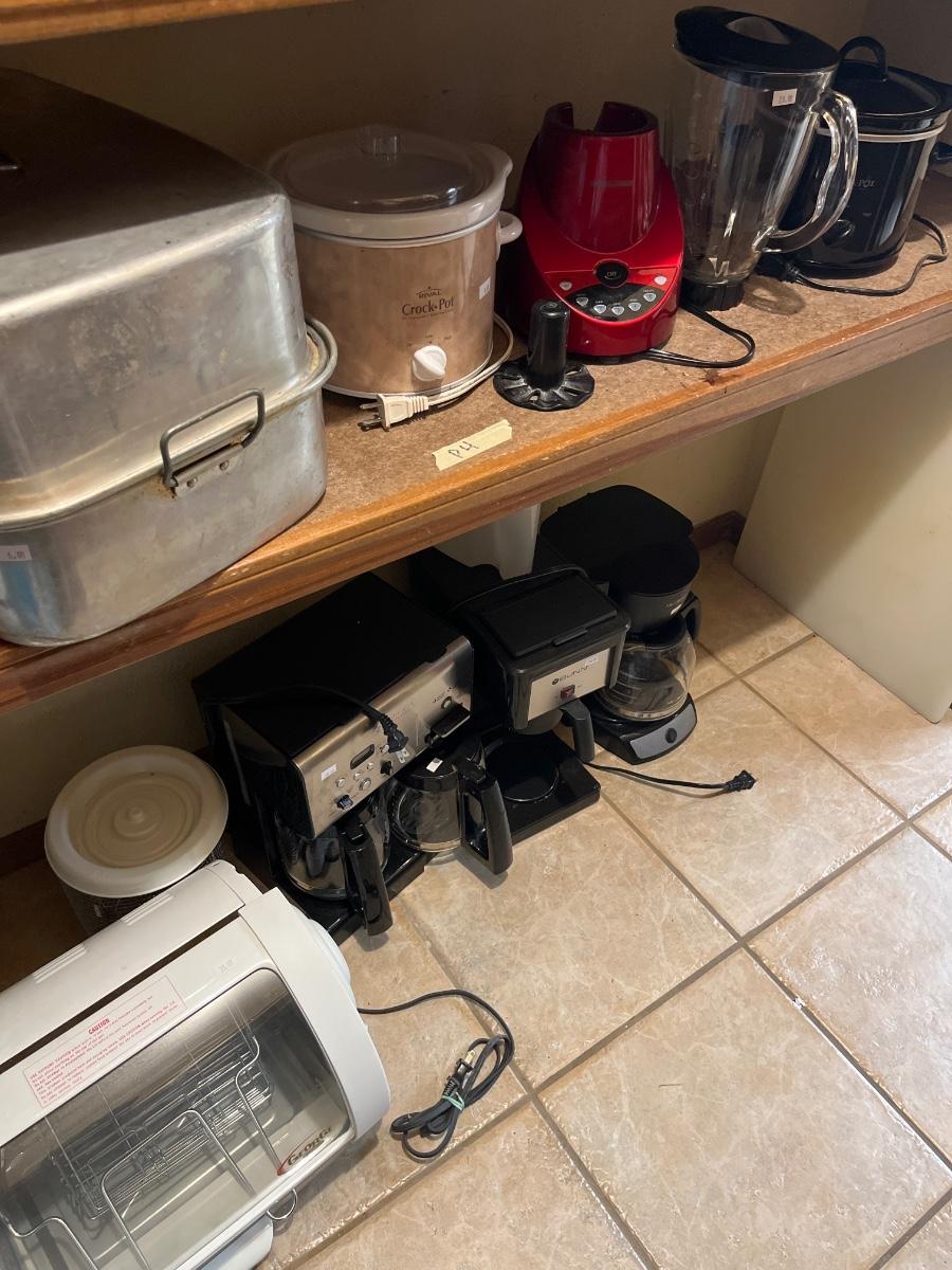 Roasting pan, blender, crockpot, coffee pots, rotisserie cooker.