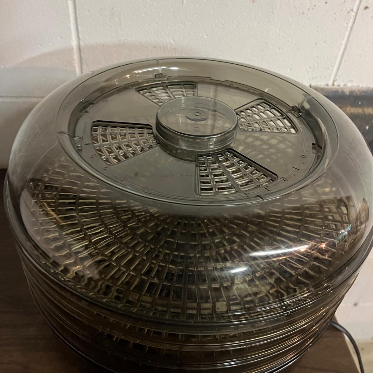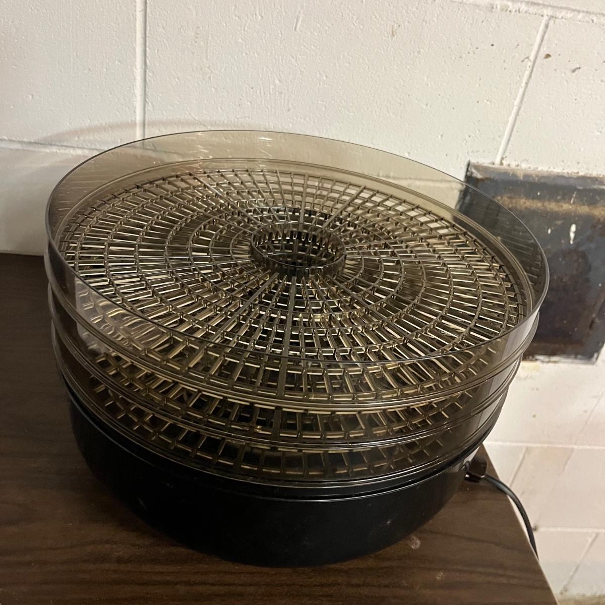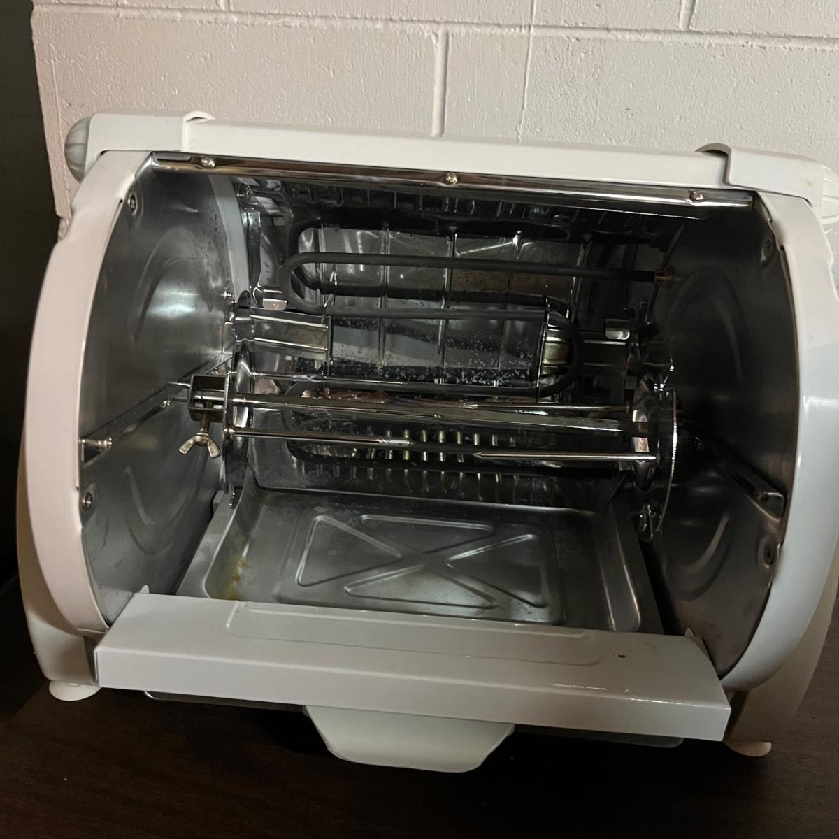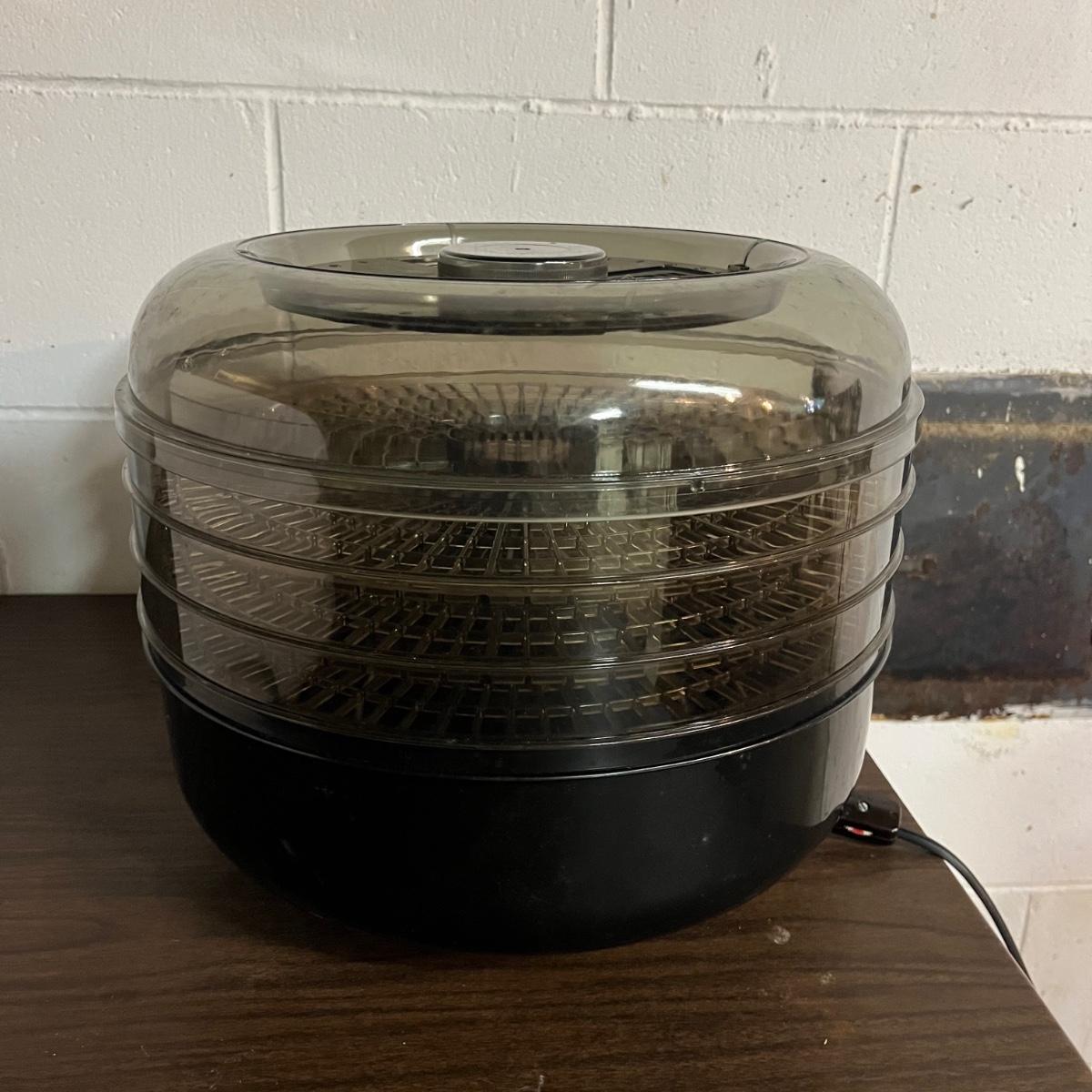Lot includes Black and Decker FryMate, dehydrator, Baby George Rotisserie, Mr Coffee Ice Tea Pot and a Proctor Silex Chop Master. Teapot and Chop Master are NIB and everything else powered on when tested except dehydrator has no light to see if it is on.