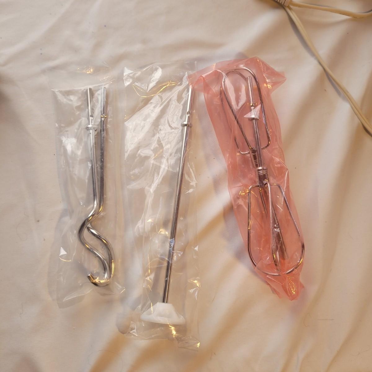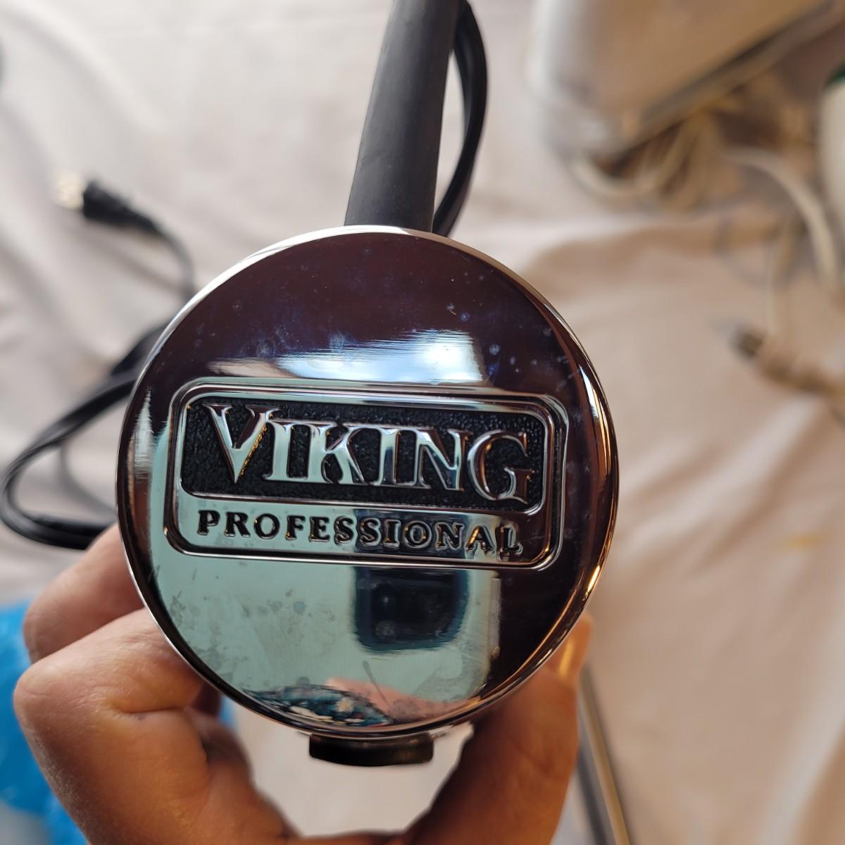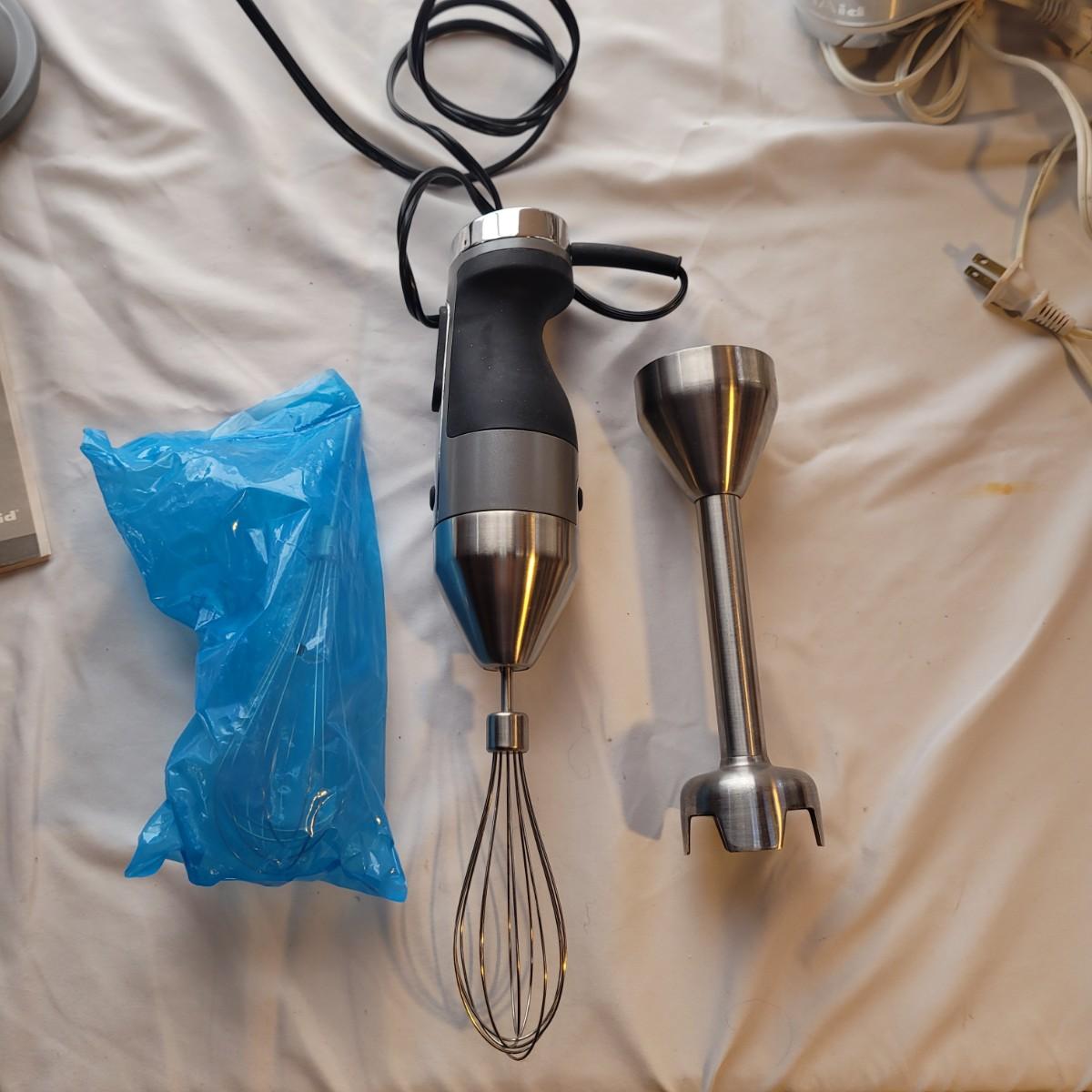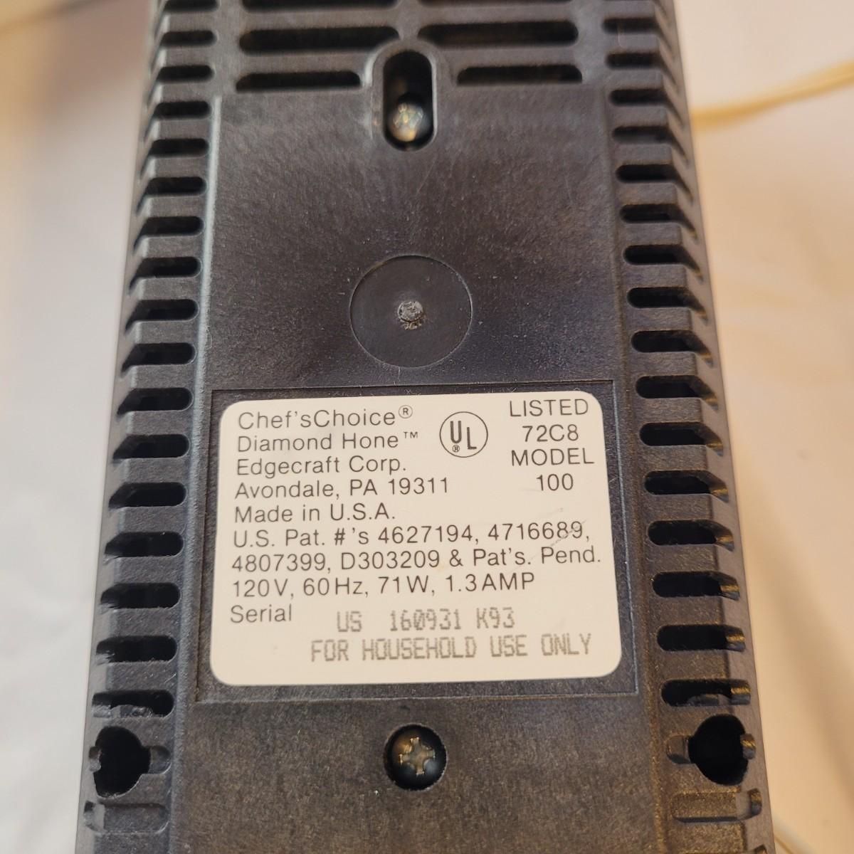 A great collection of handheld kitchen appliances and accessories, including a Viking hand blender, KitchenAid hand mixer, Krups can opener, and Chef’s Choice diamond hone knife sharpener. All items powered on when plugged in. Knife sharpener measures 3.5” x 9” x 4”H. Shipping available.