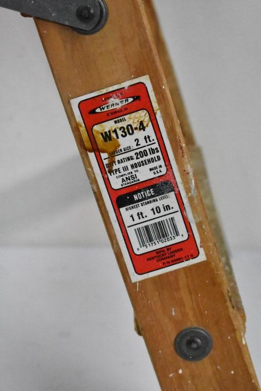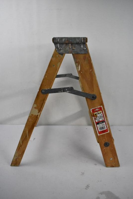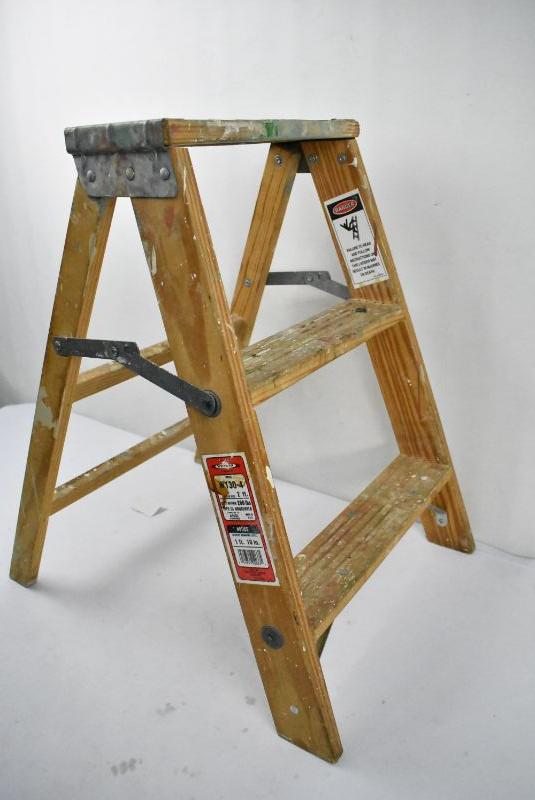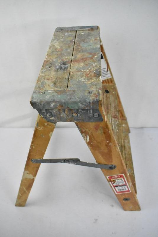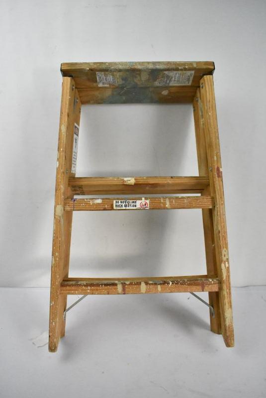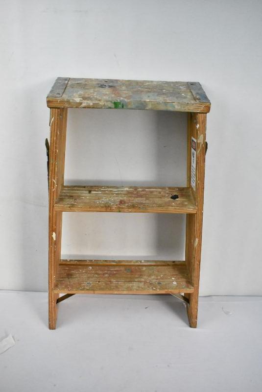 Small Ladder Stool with Paint Splatters, Wooden 2 Feet Tall