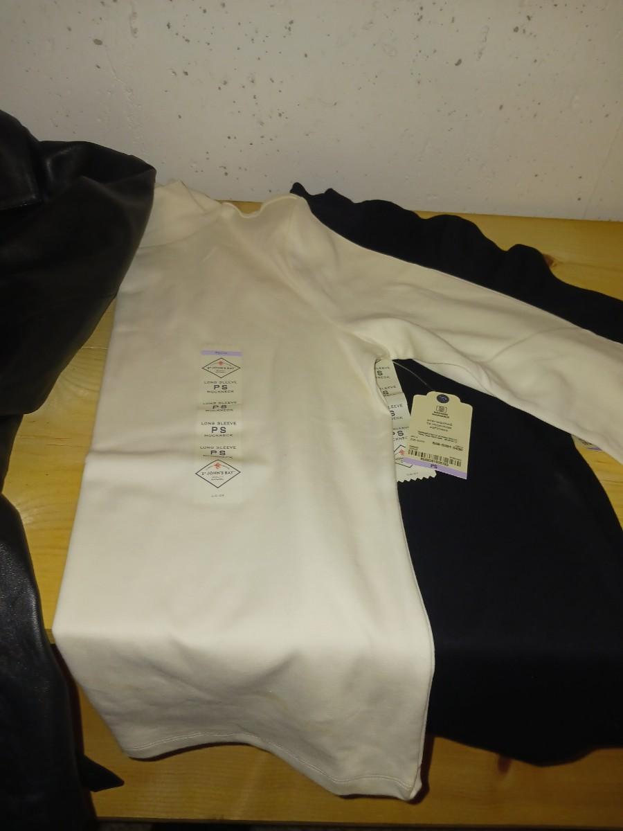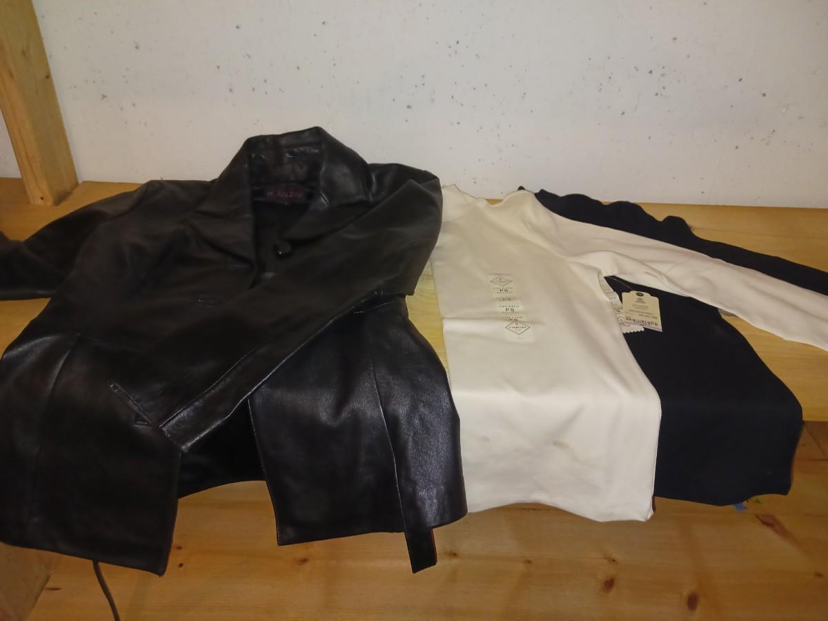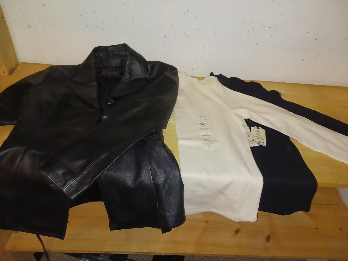 SMALL LEATHER COAT, TWO NEW TURTLE NECK SWEATERS