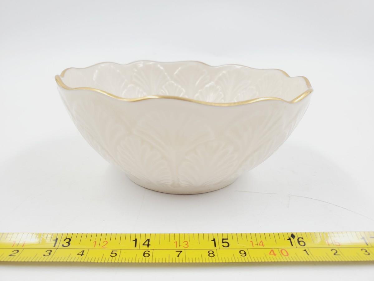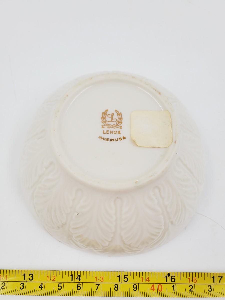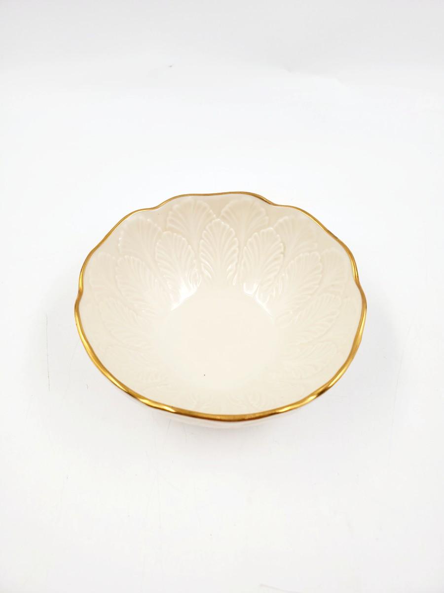 SMALL LENOX IVORY COLORED DISH WITH GOLD RIM