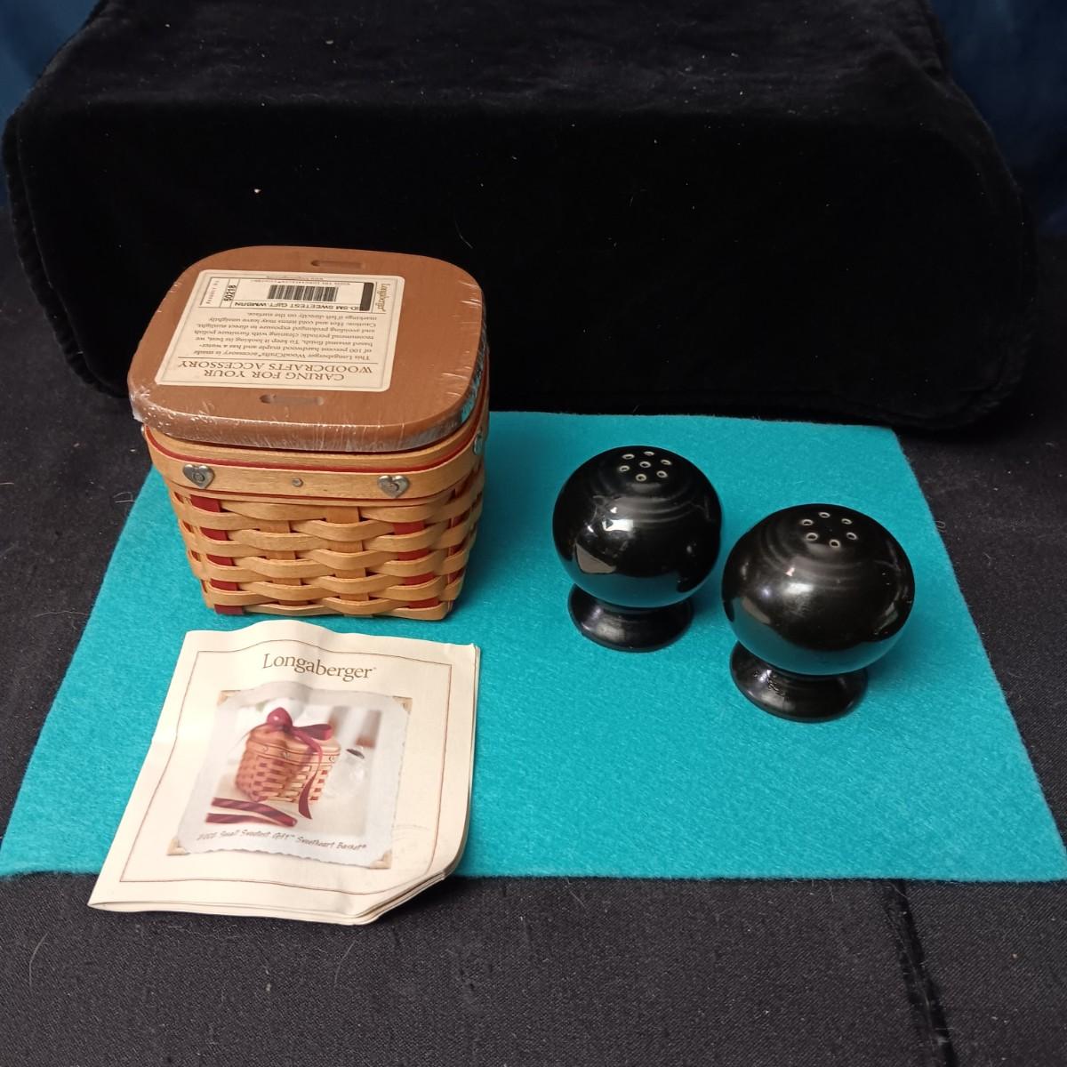 SMALL LONGABERGER BASKET AND FIESTAWARE SHAKERS