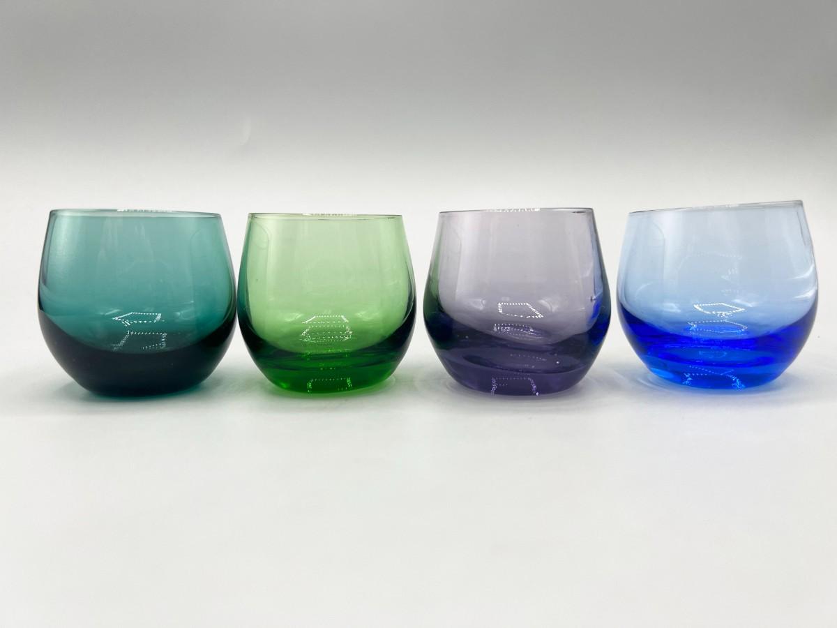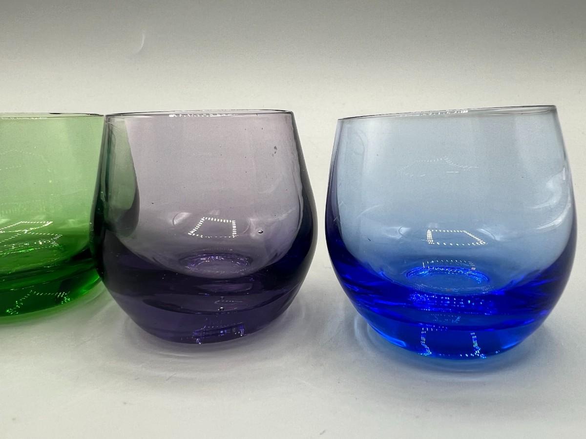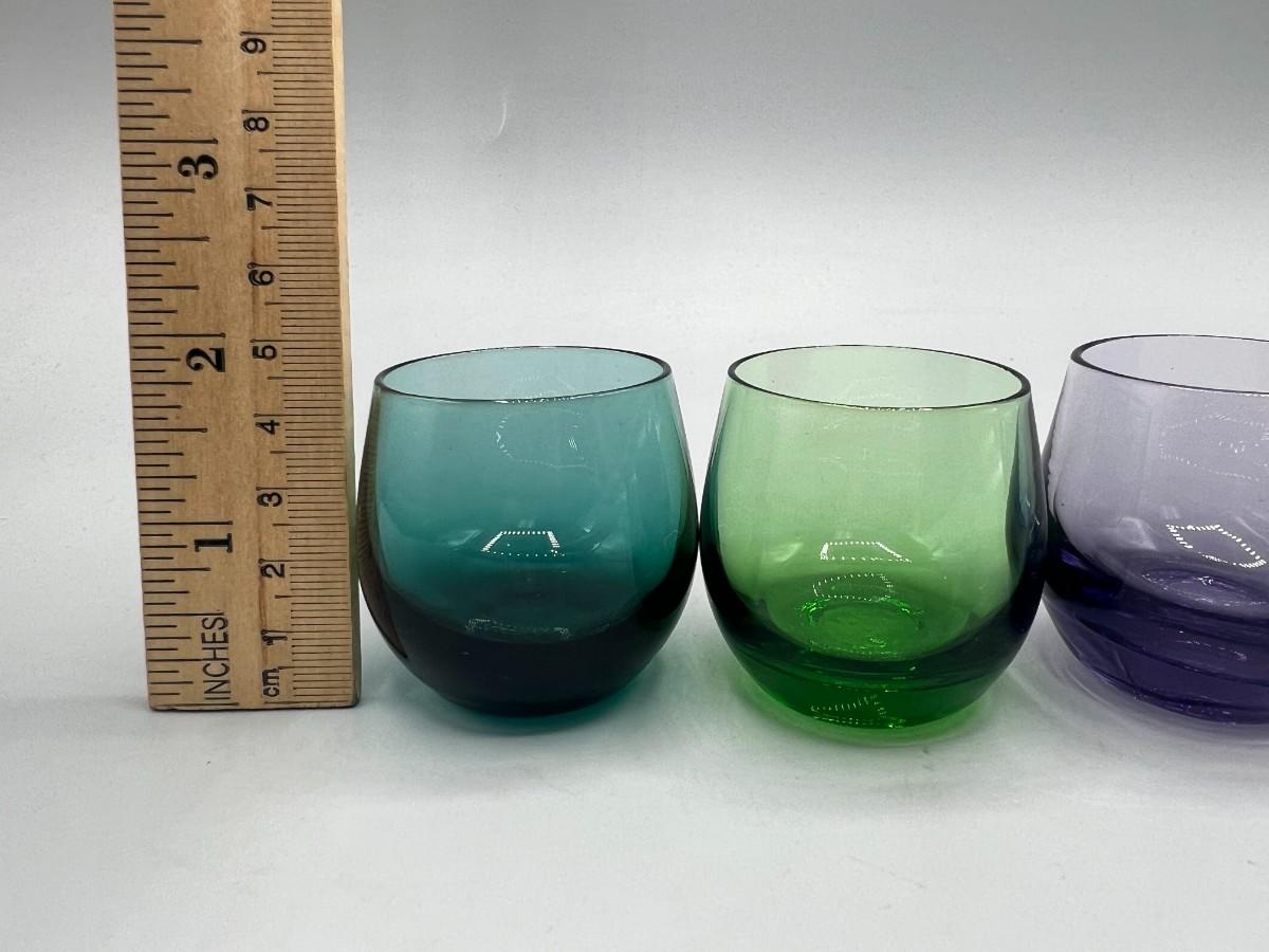 Small Lot of 4 Colorful Bubble Glass Drinking Shot Glasses blue green purple teal