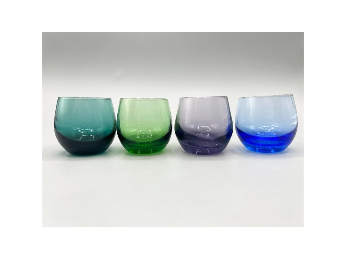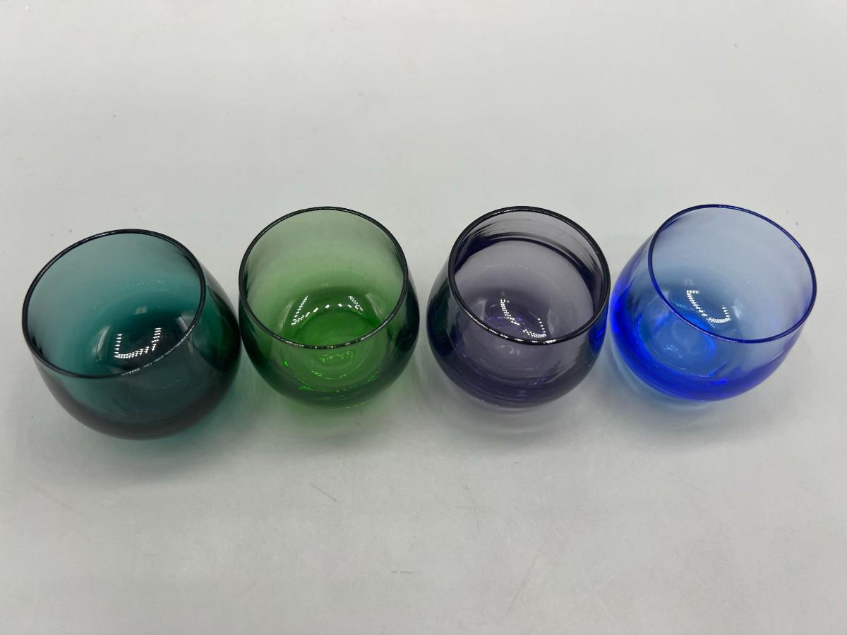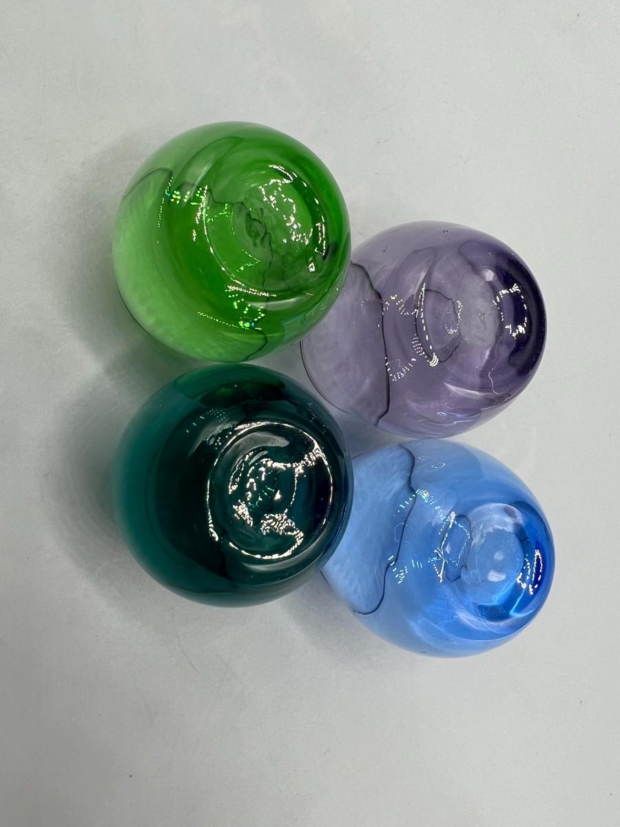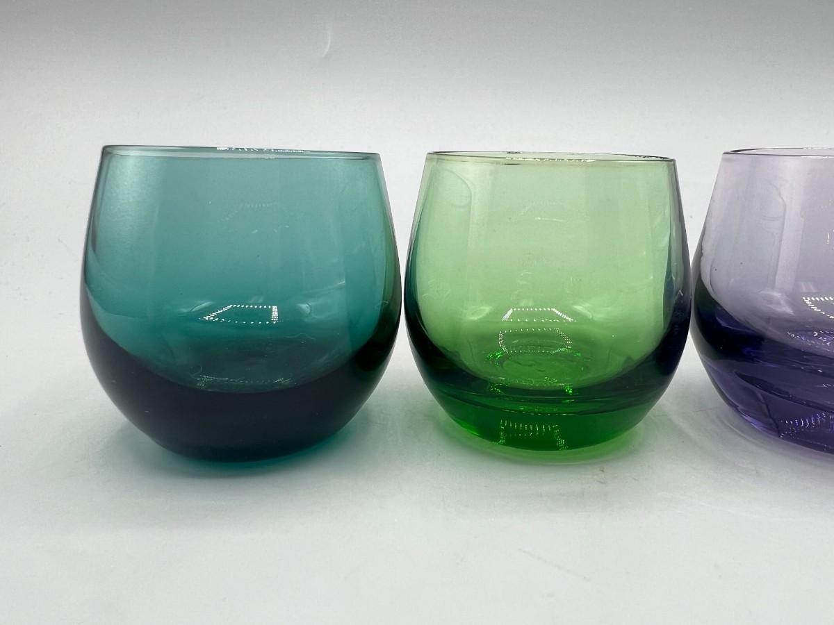 Small Lot of 4 Colorful Bubble Glass Drinking Shot Glasses blue green purple teal