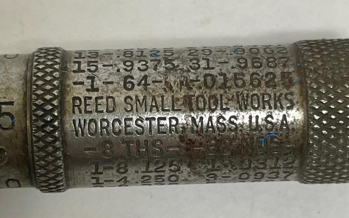 Reed Small Tool Works of Worchester, MA. Dirty, but appears to be undamaged. Barrel turns freely. Overall length is 4".