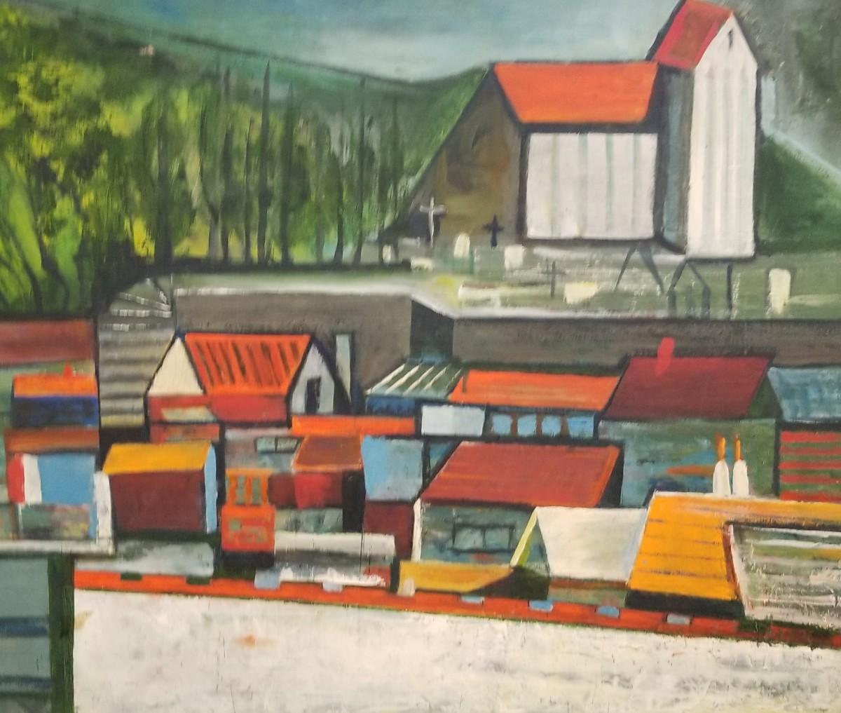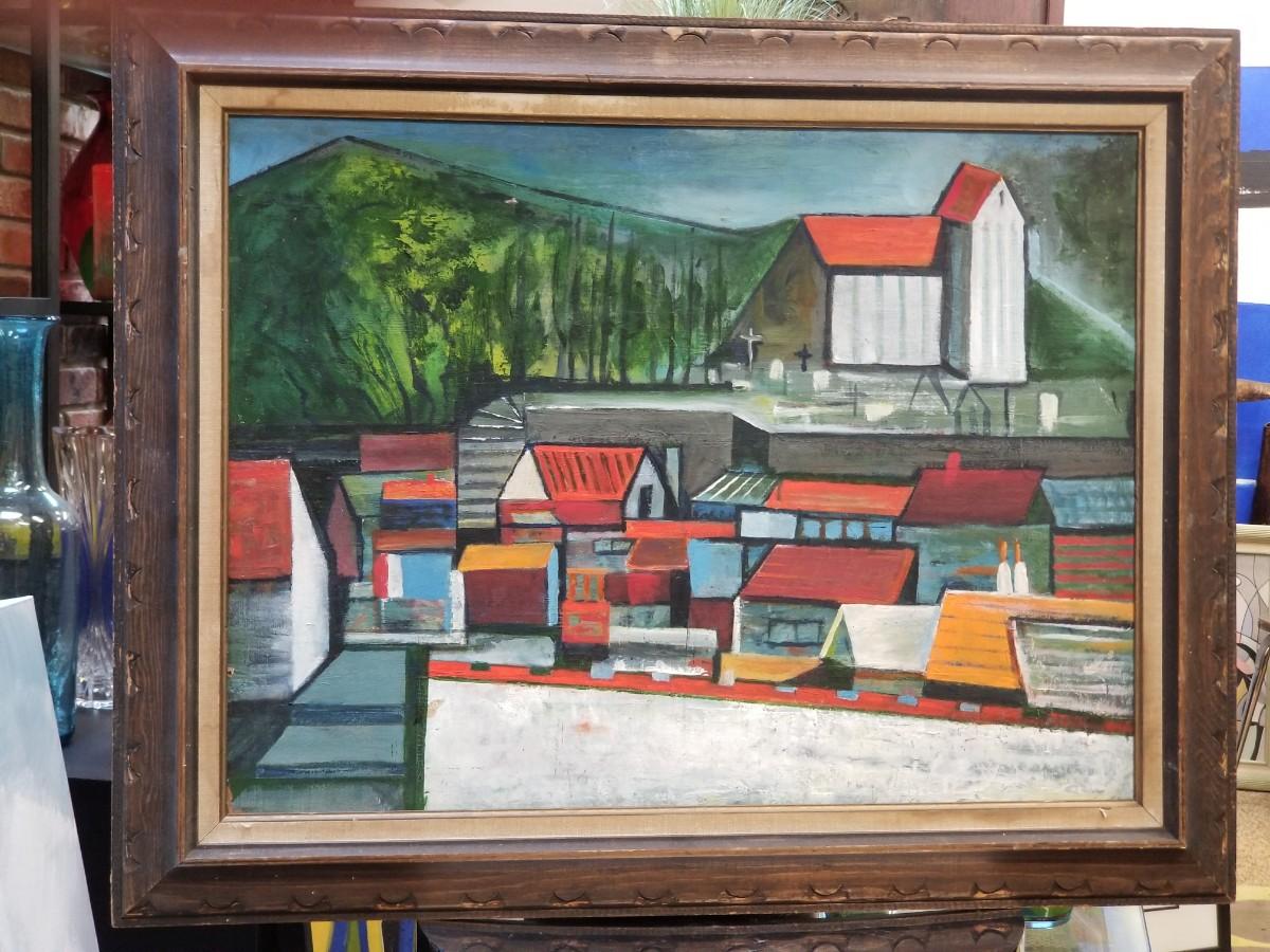Small mid-century constructivist painting ofvillage
