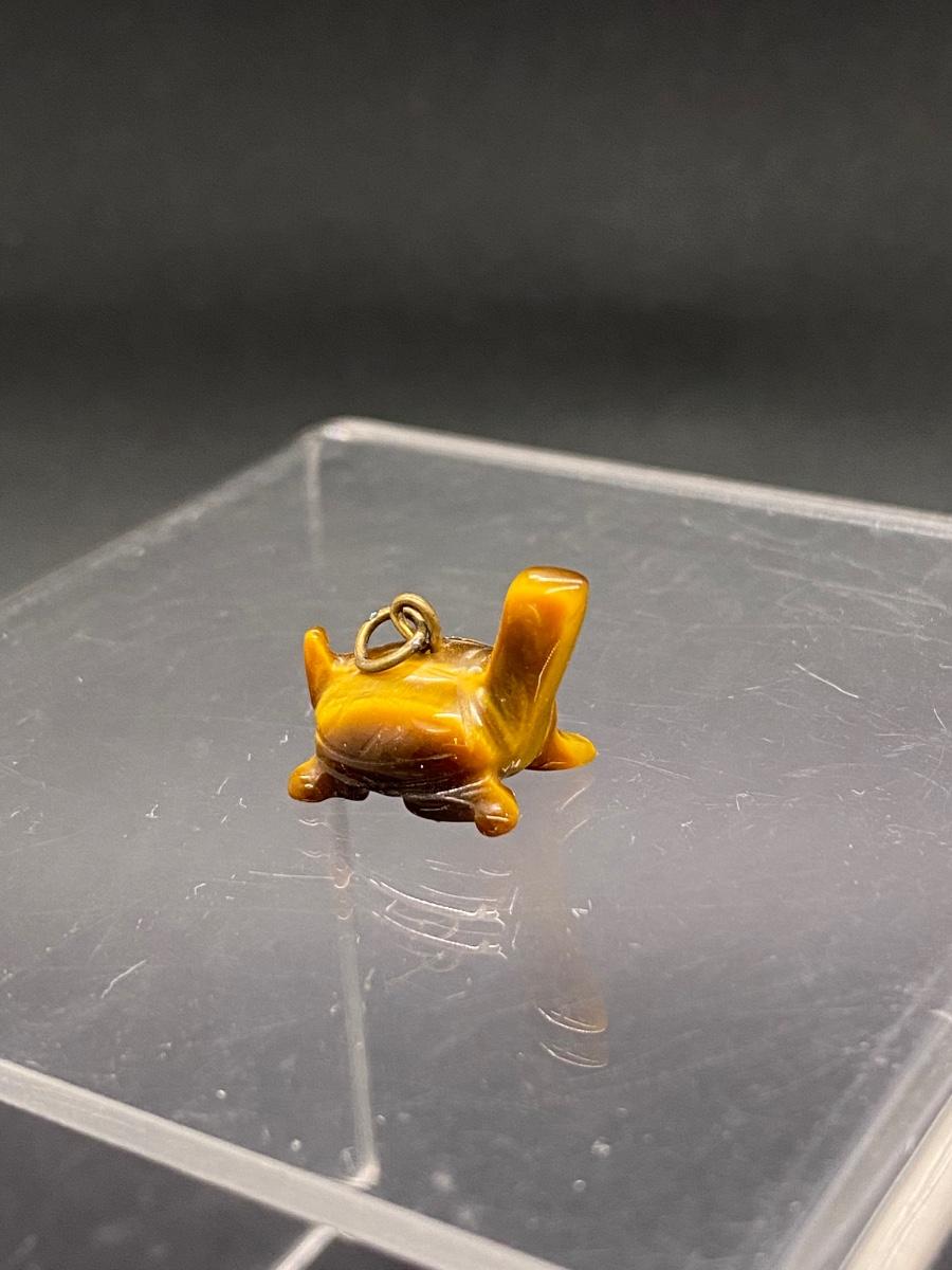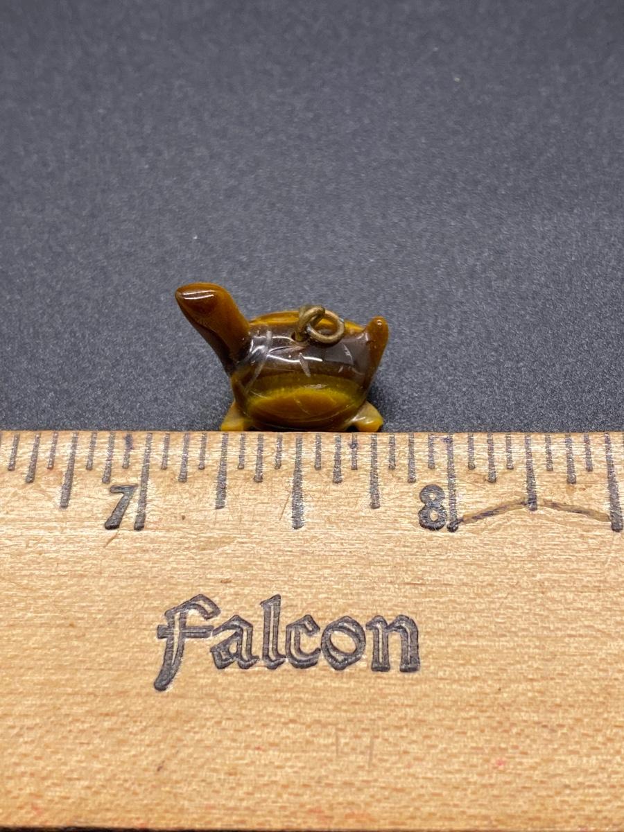 Small Miniature Turtle Tortoise Tigers Eye Carved Polished Stone Pendant Charm
