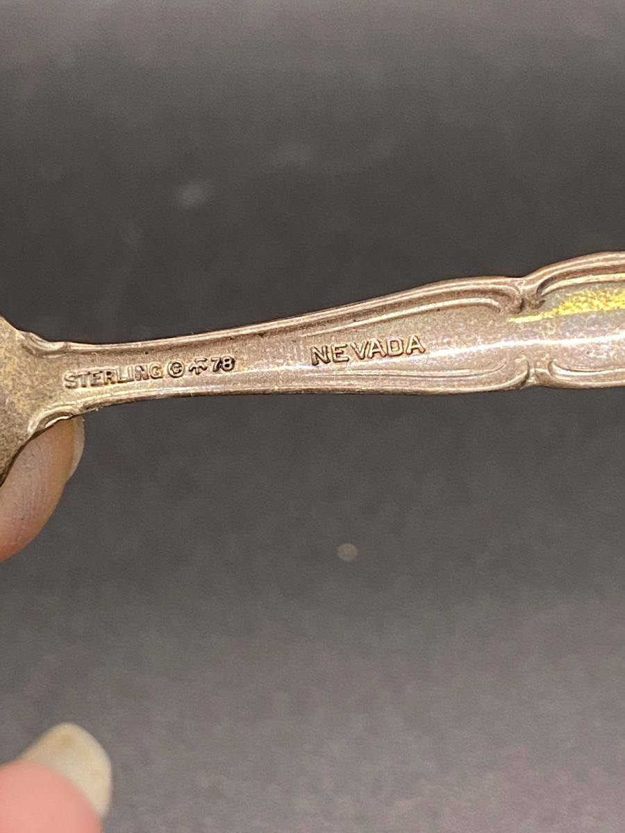 Vintage 1978 sterling silver collector spoon for the state of Nevada. Spoon is about 2.5" size. State flower. Sagebrush. is on the handle.