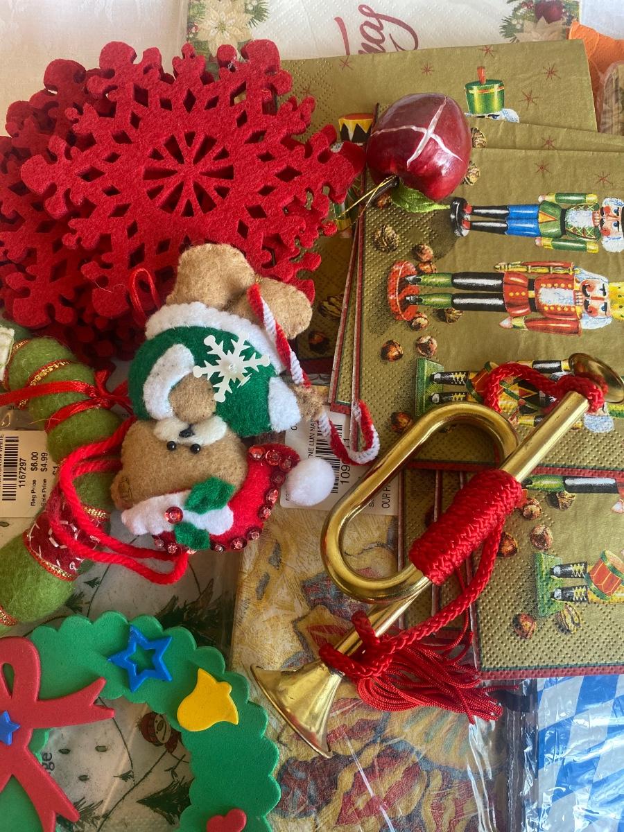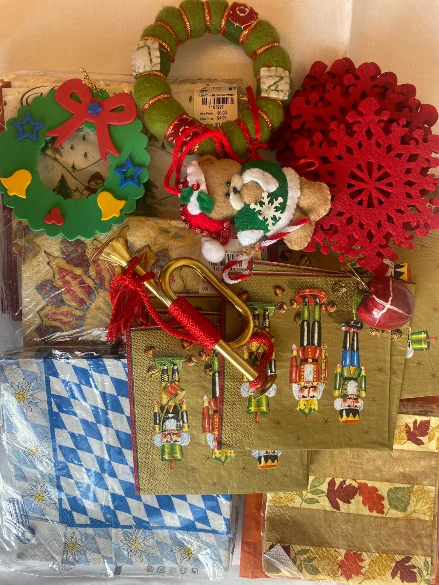 Small mixed lot Christmas and napkins bonus glass ornament not pictured