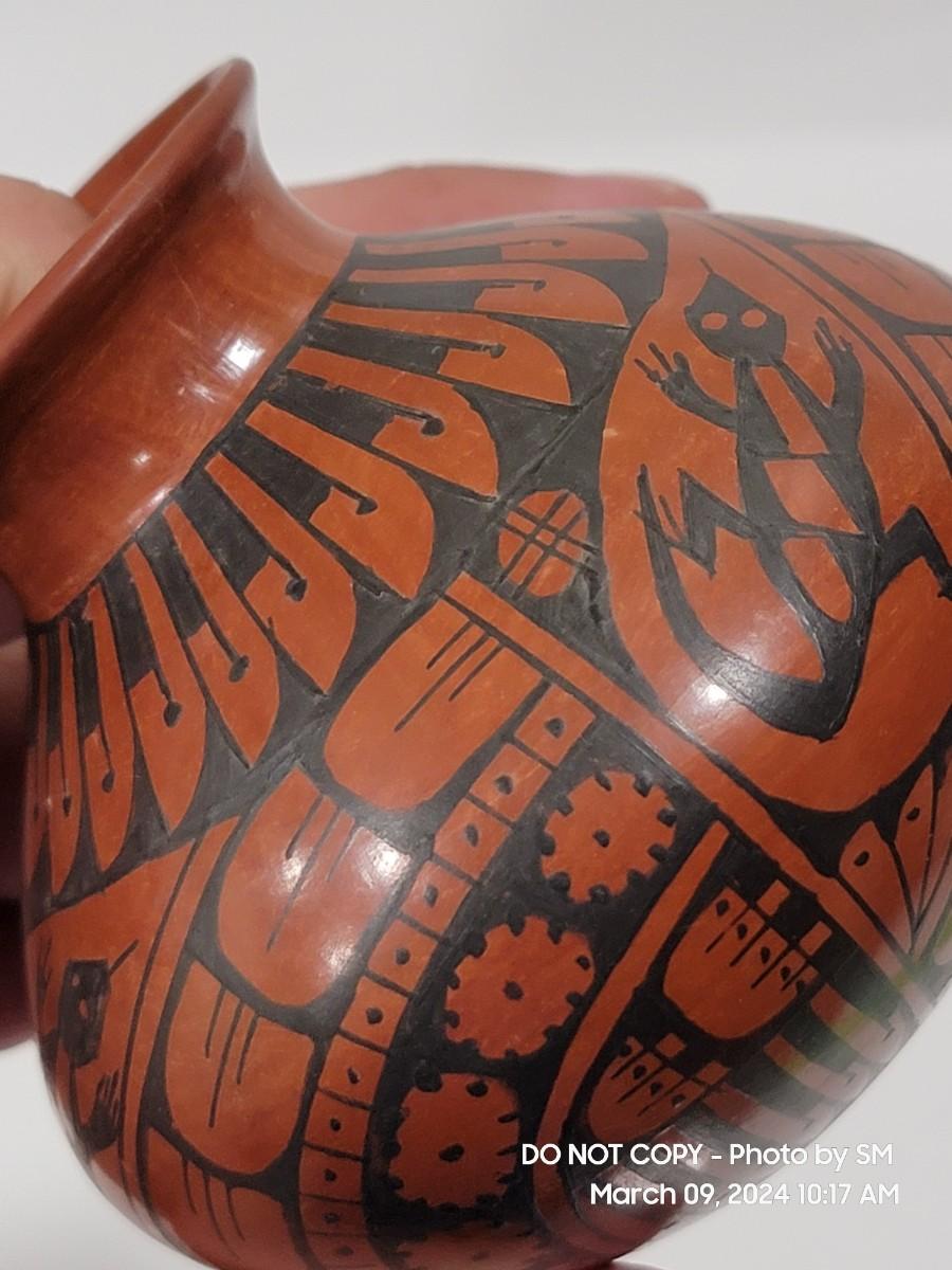 Beautifully carved, handmade feels like clay / pottery. Light and delicate. No chips, no signature. Just a fabulous art piece.