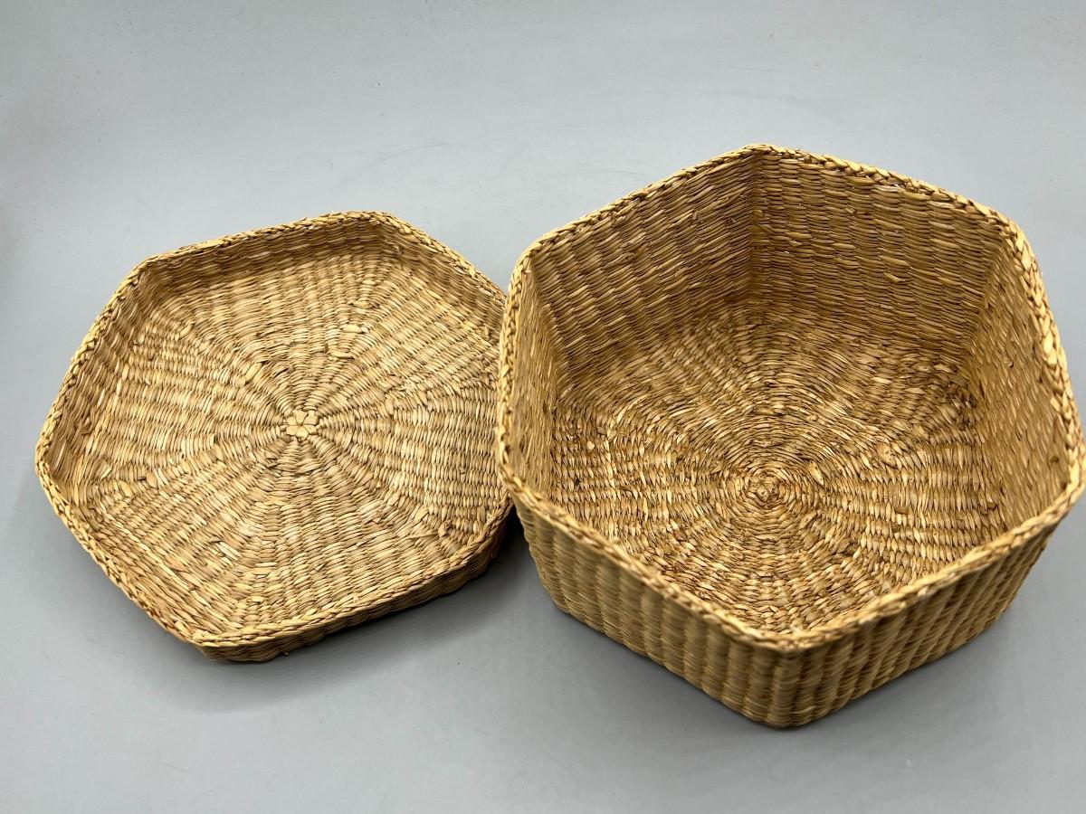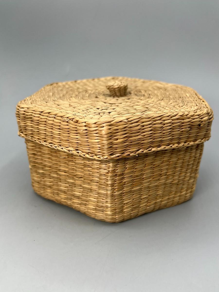 Small Natural Fiber Woven Straw Fiber Trinket Box with Lid