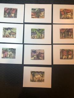 Series of 10 small paintings by Nguyen Chang. “˜Hanoi Ancient Streets’ painting collection.