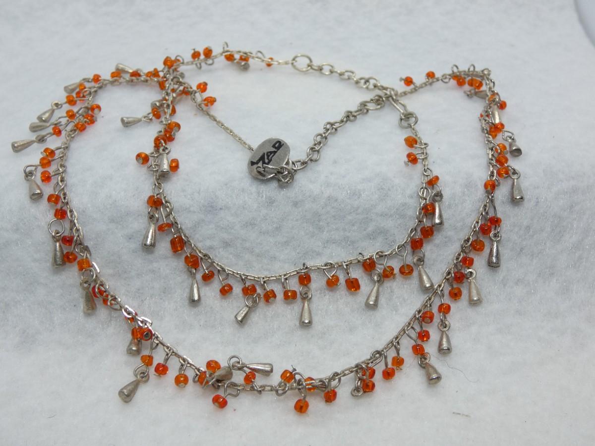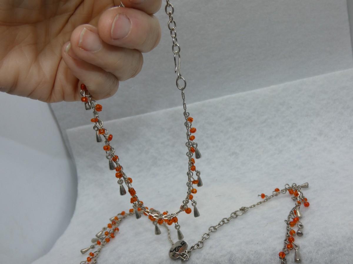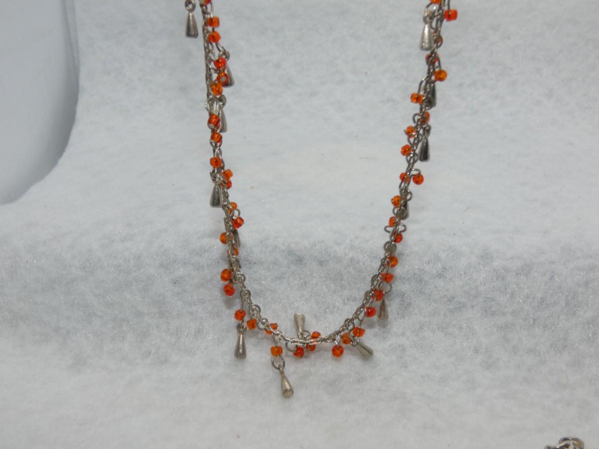 Small Orange Beaded Necklace & Anklet Set, Silver Tone
