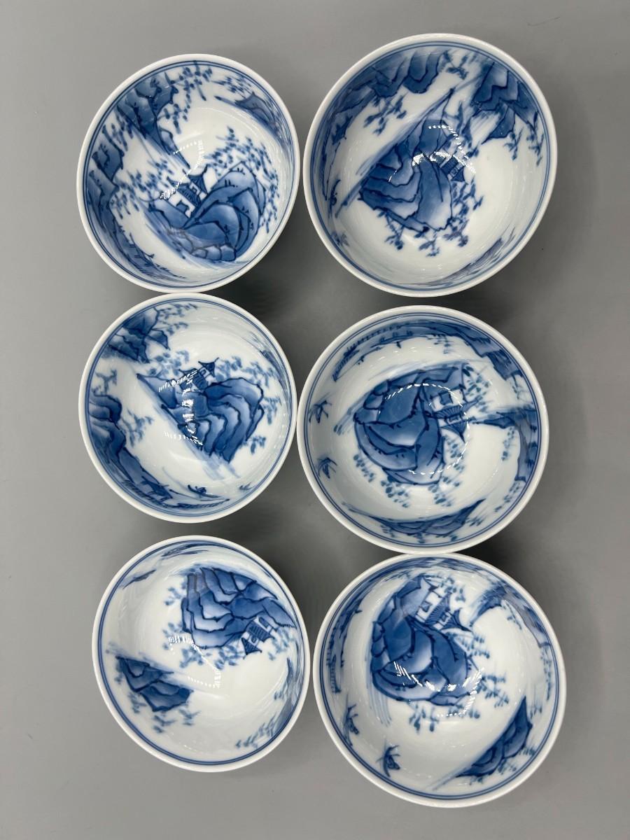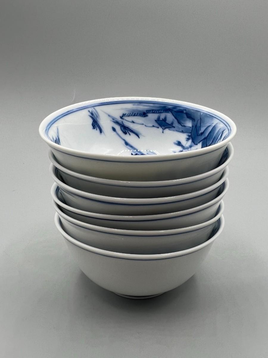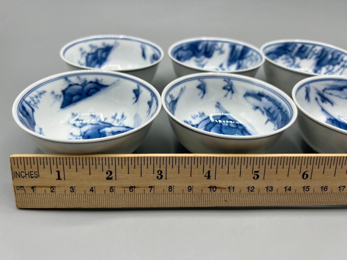 Small Oriental Blue Transferware Ceramic Sake Bowl