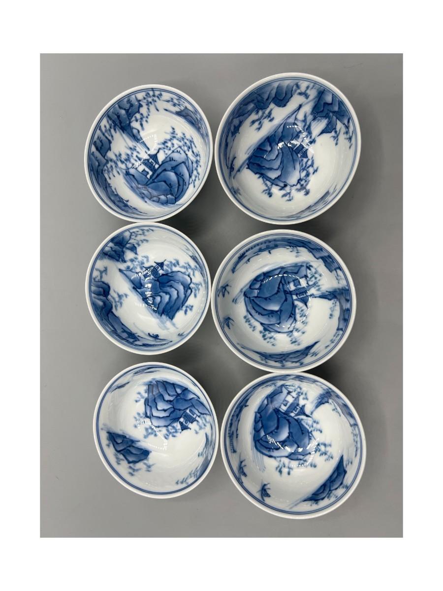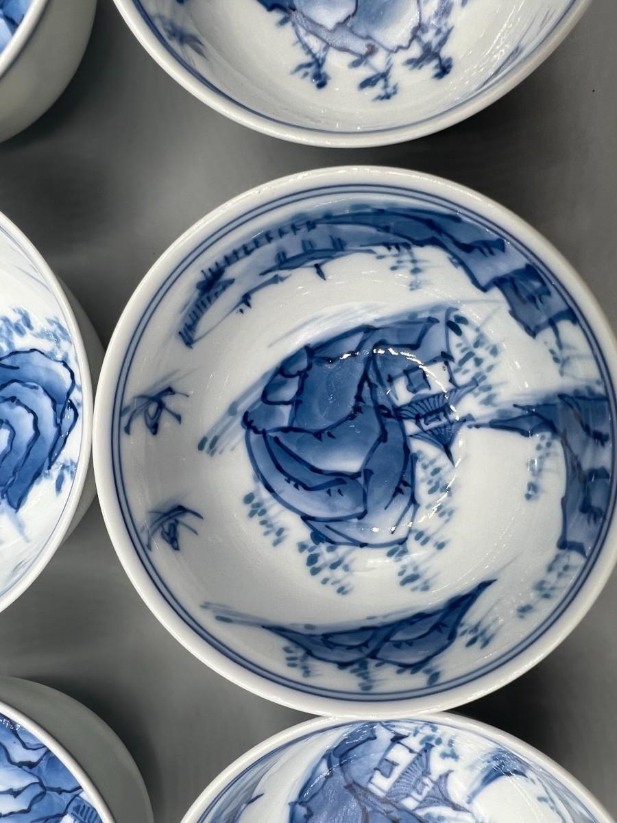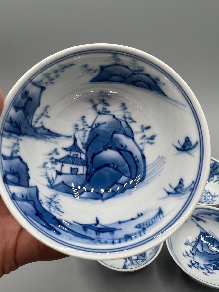 Small Oriental Blue Transferware Ceramic Sake Bowl
