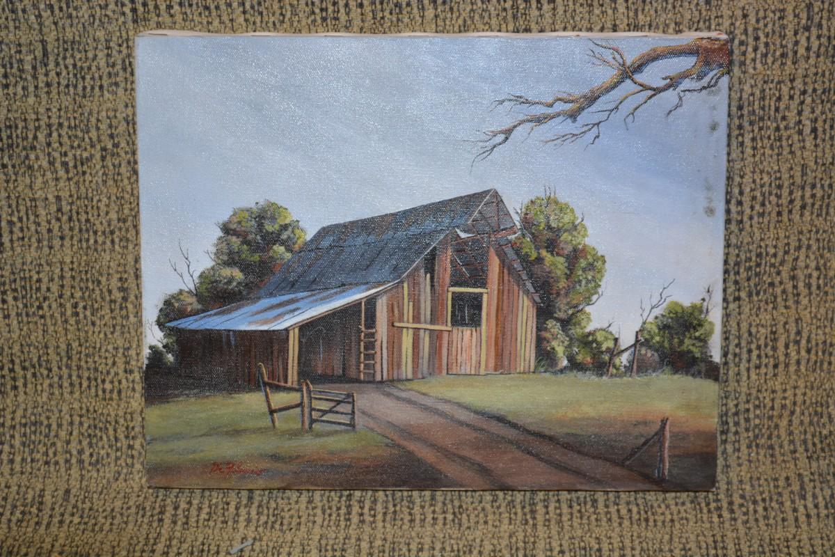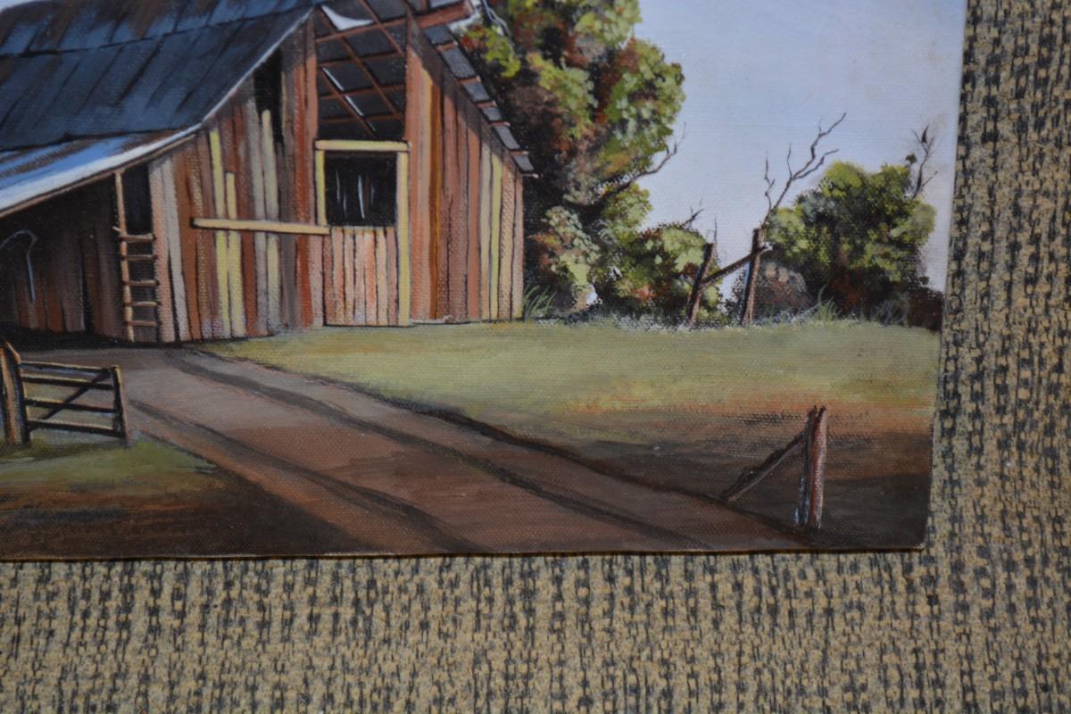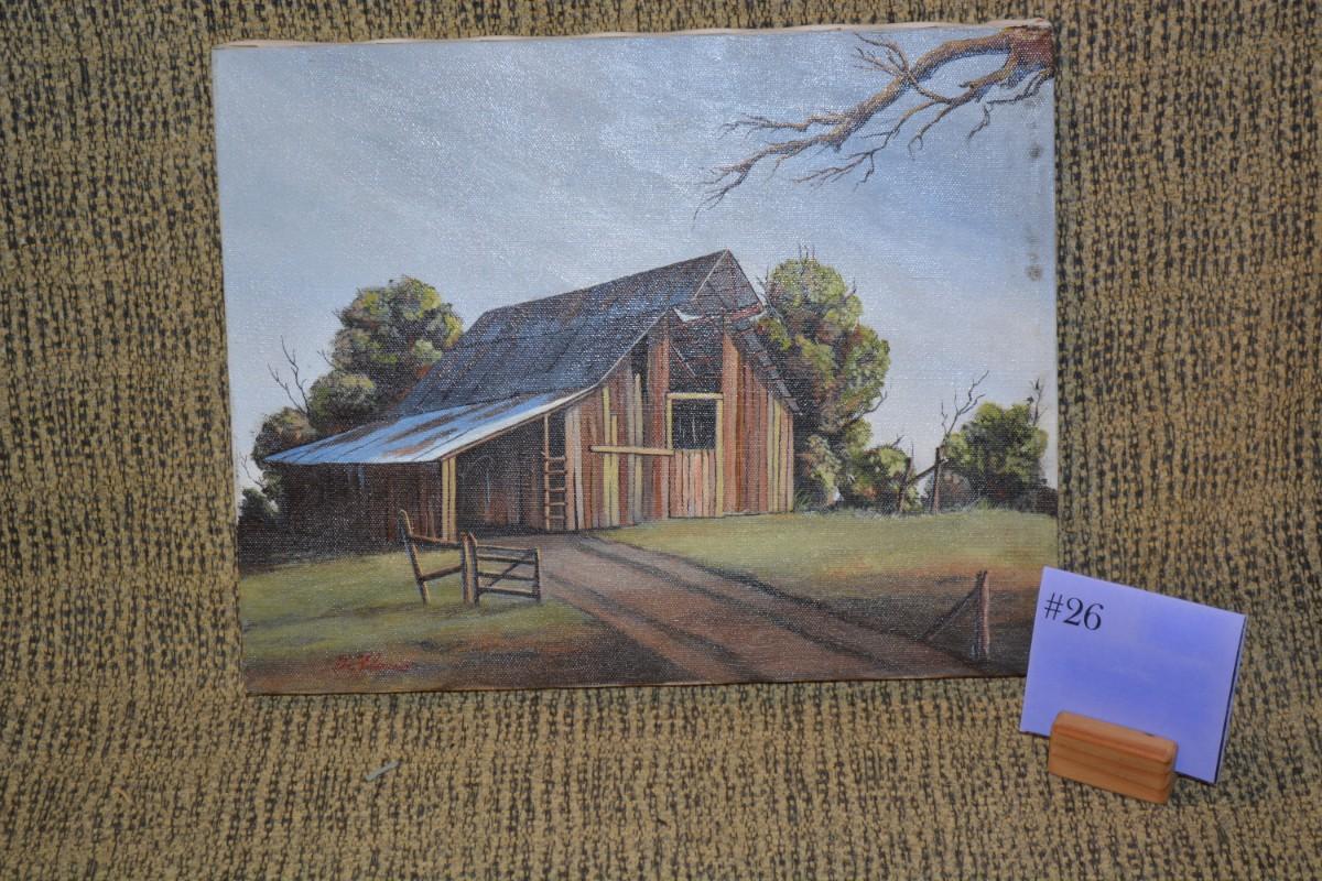 Small Original Acrylic on Canvas Barn, Signed by Artist