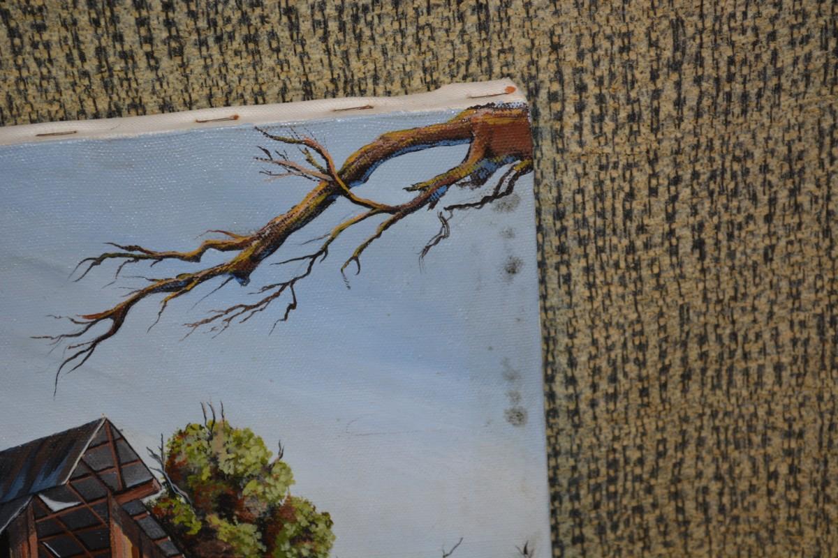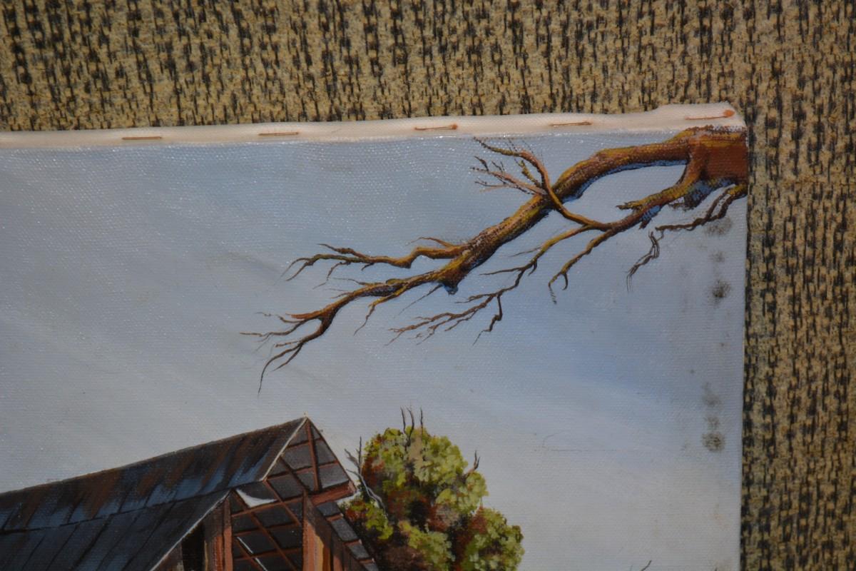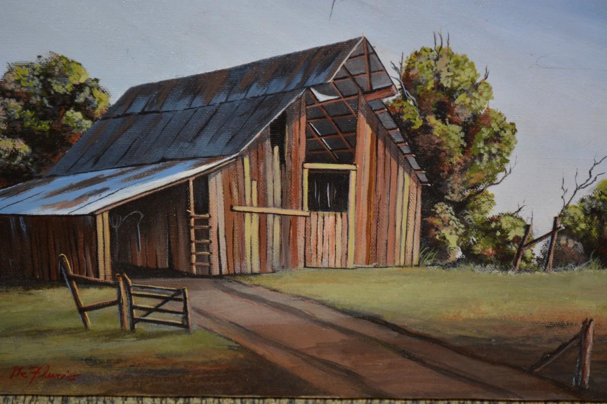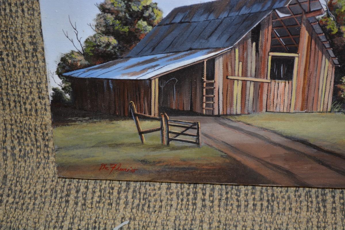 Small Original Acrylic on Canvas Barn, Signed by Artist
