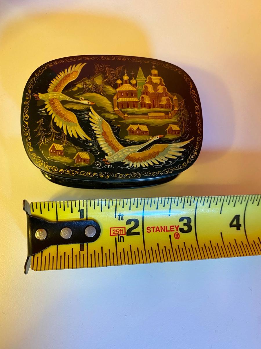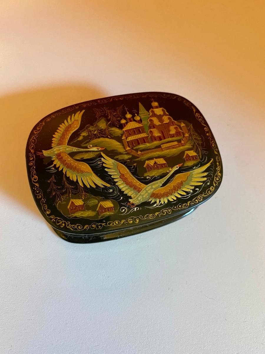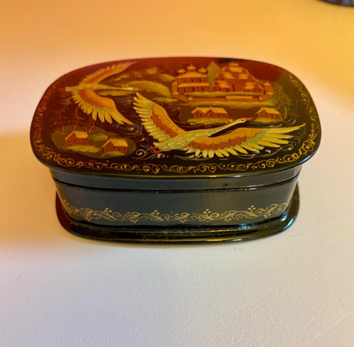 Russian Lacquer Box Cranes Over Village