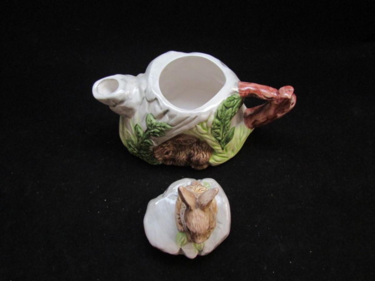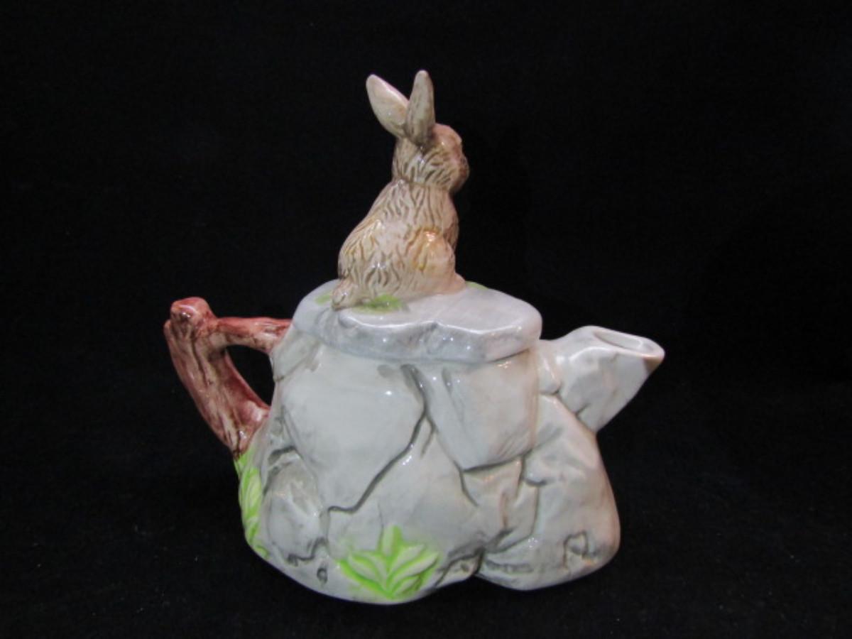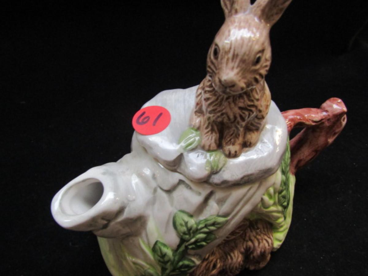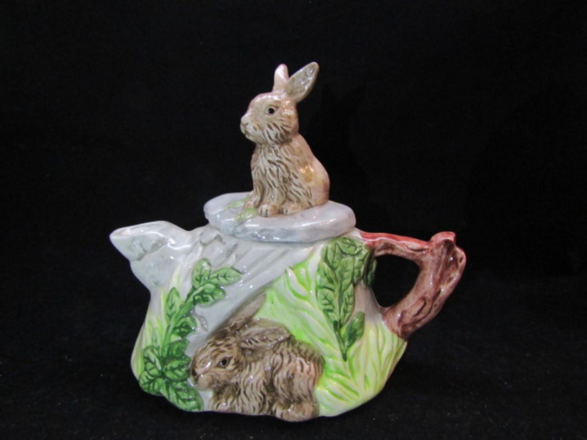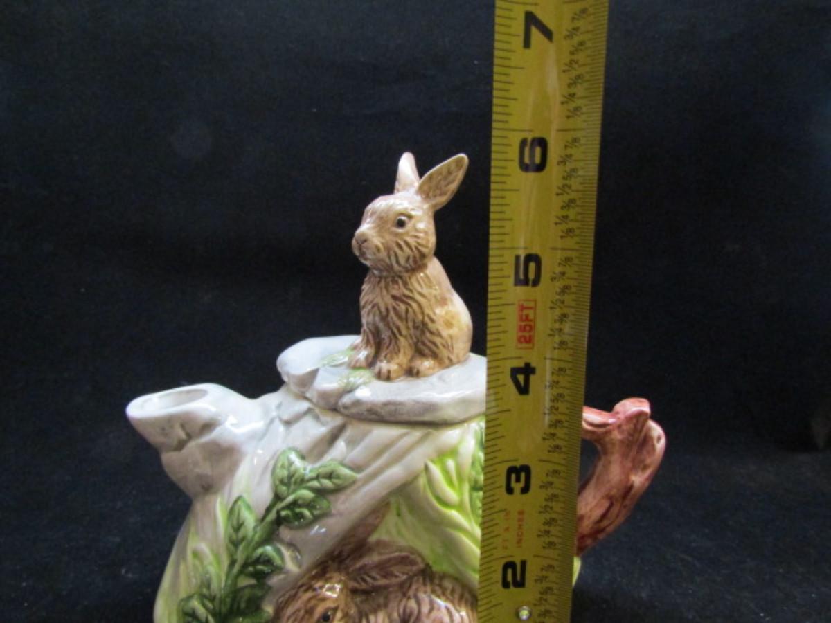 Small Painted Ceramic Teapot- Bunnies- Unmarked (#61)