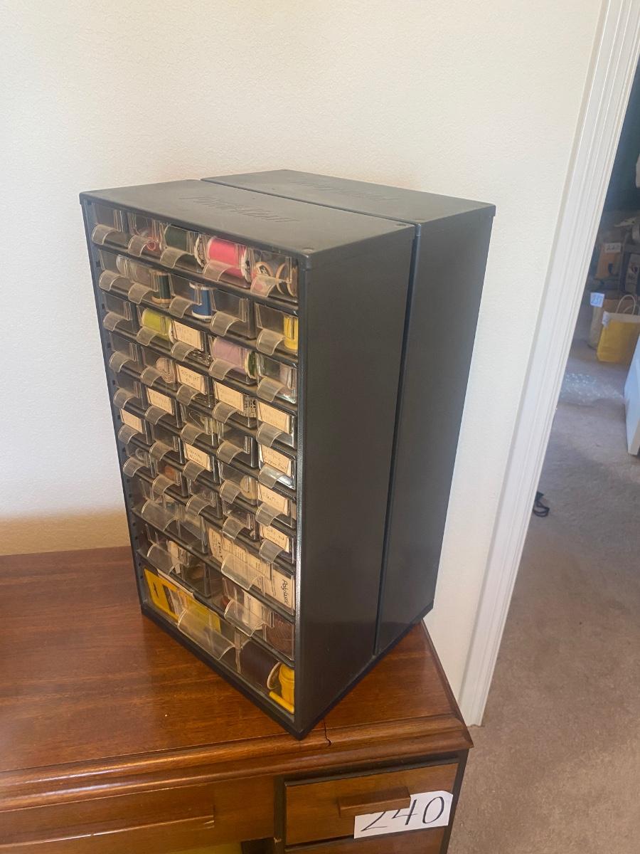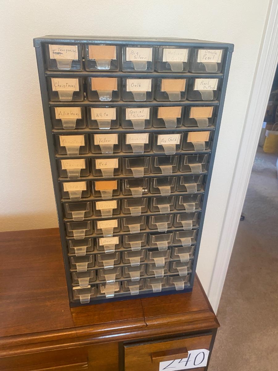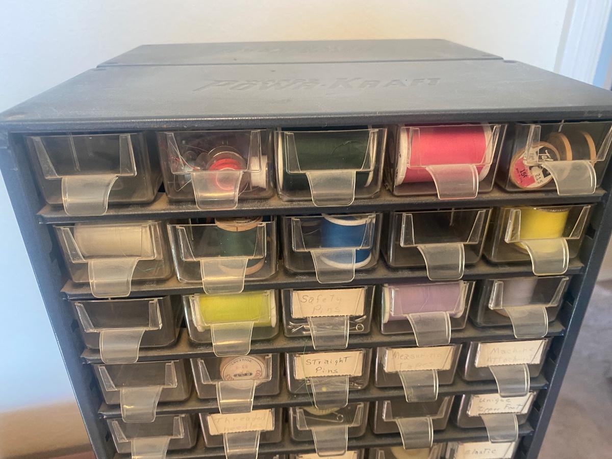 DOUBLE SIDED MULTI DRAWER CAROUSEL ORGANIZER PACKED WITH CRAFTING ITEMS