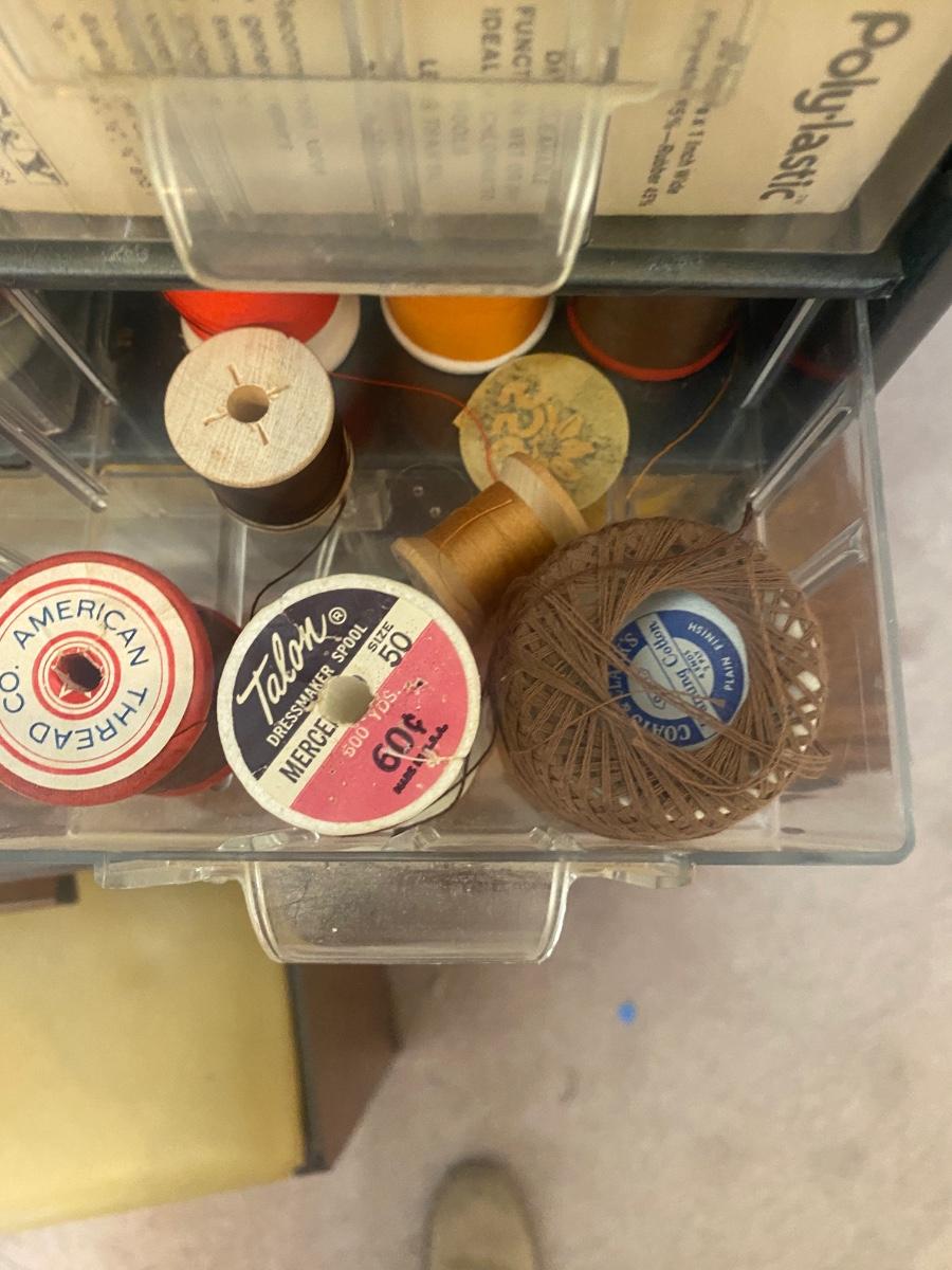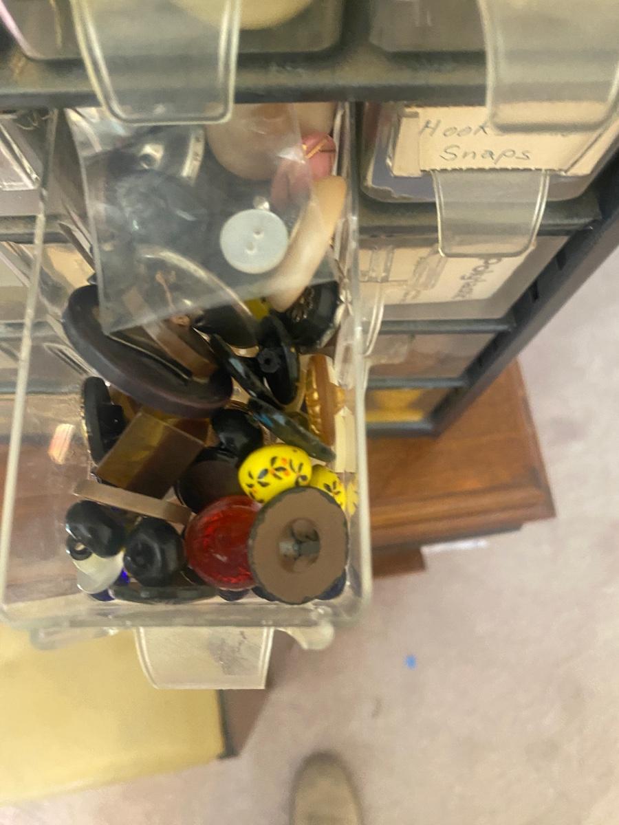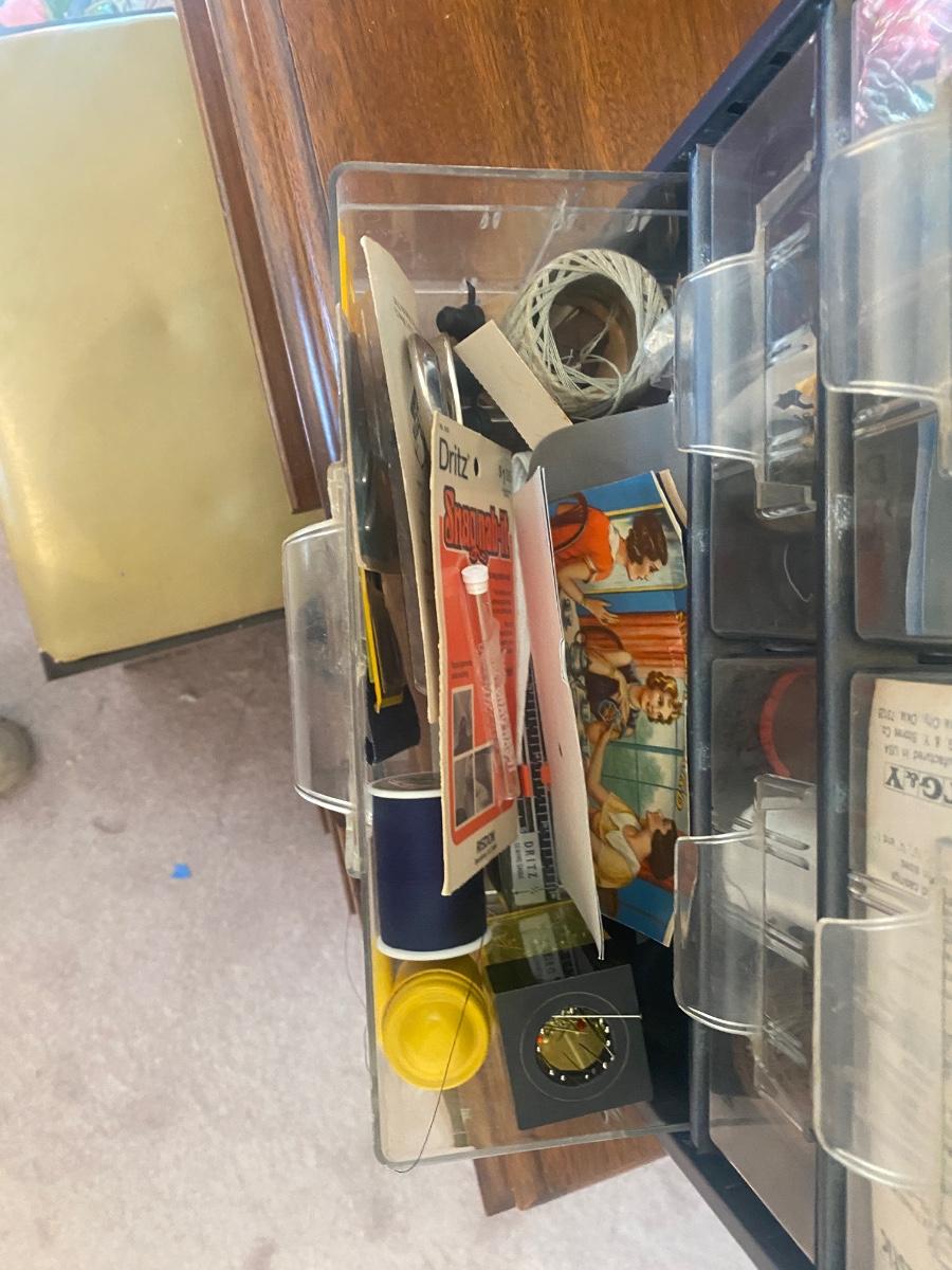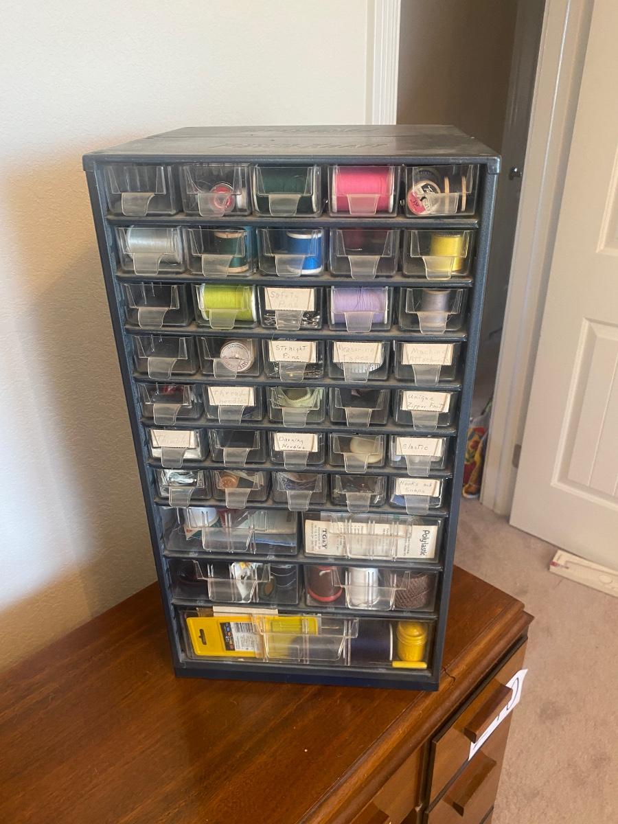 DOUBLE SIDED MULTI DRAWER CAROUSEL ORGANIZER PACKED WITH CRAFTING ITEMS