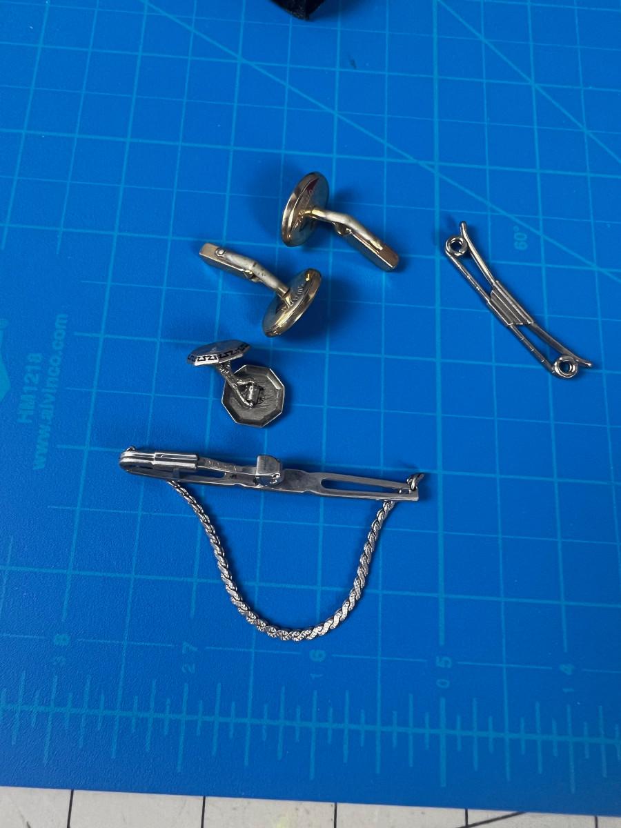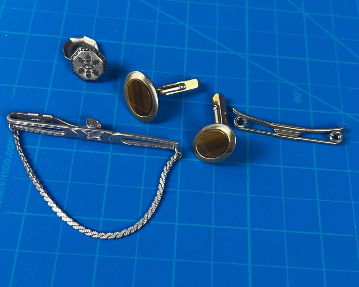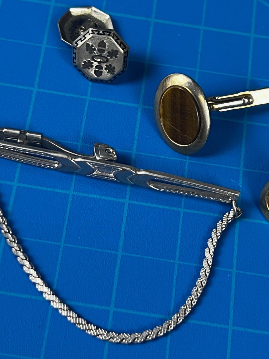 Small Pile of Men's Jewelry: Cuff Links and Tie Bars