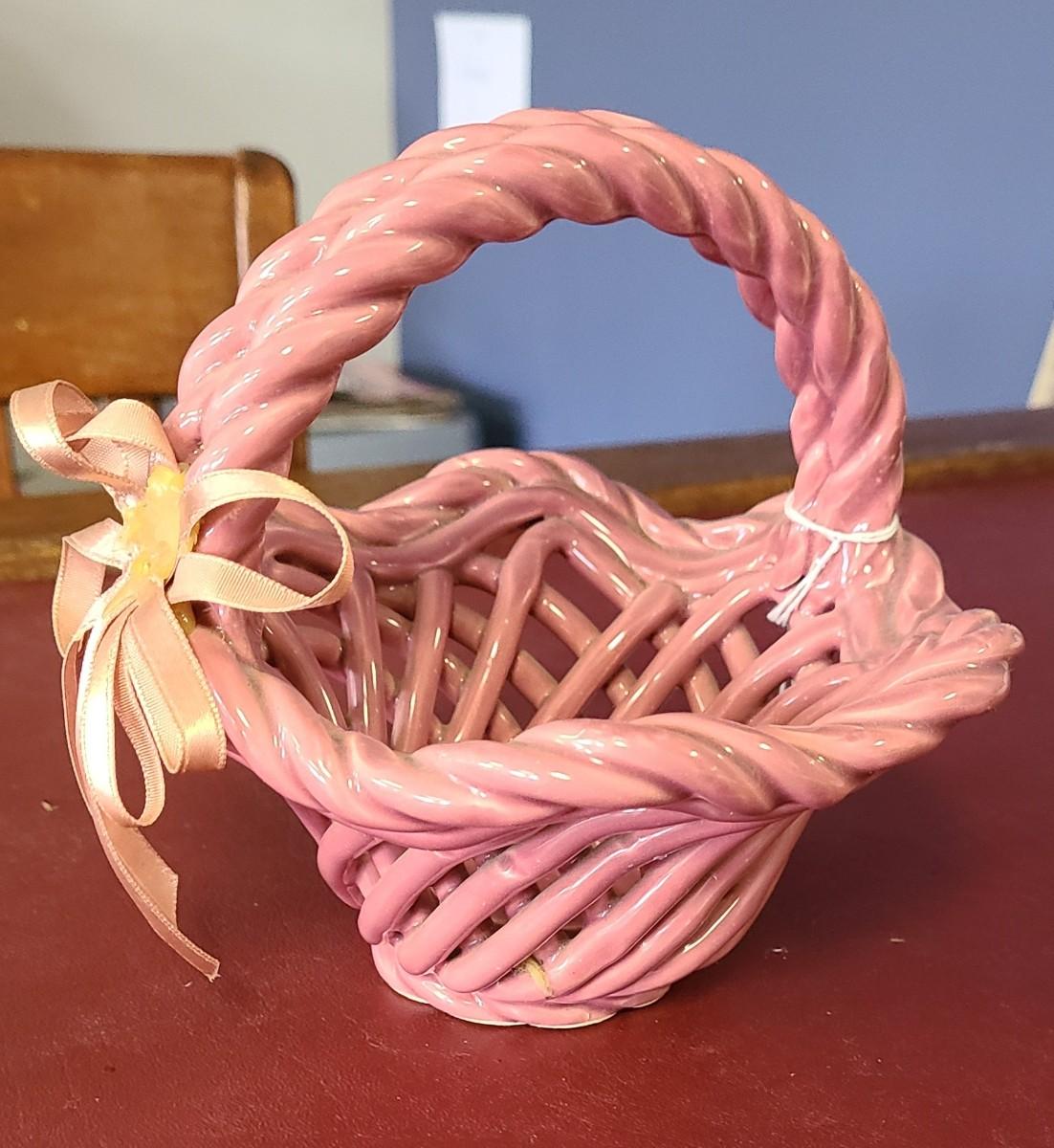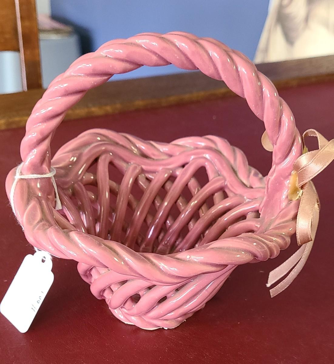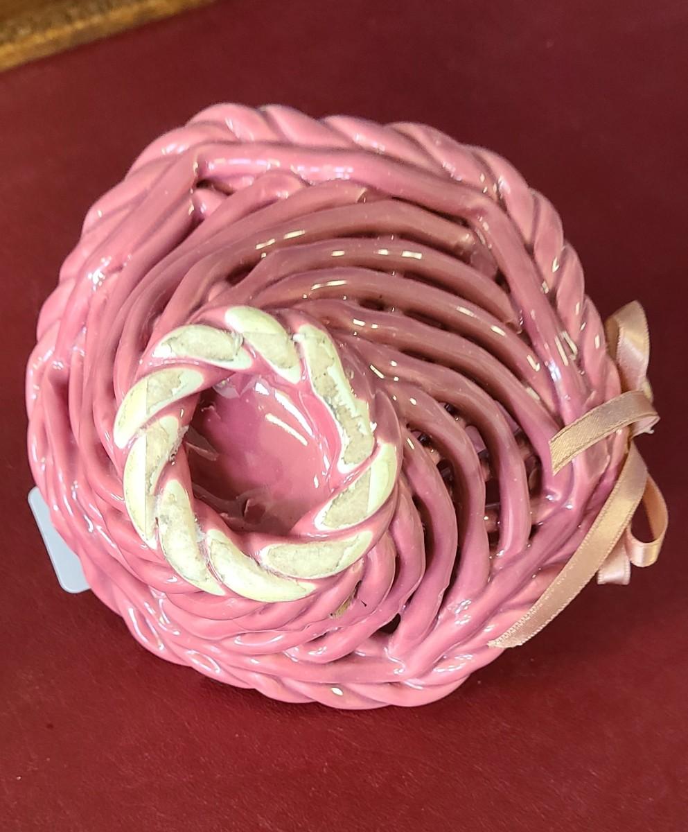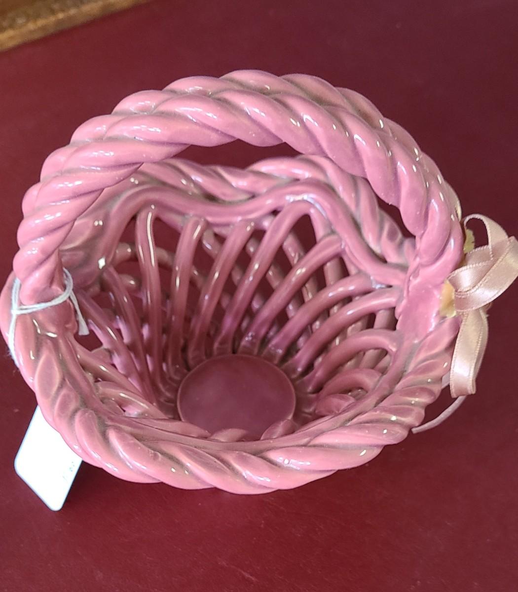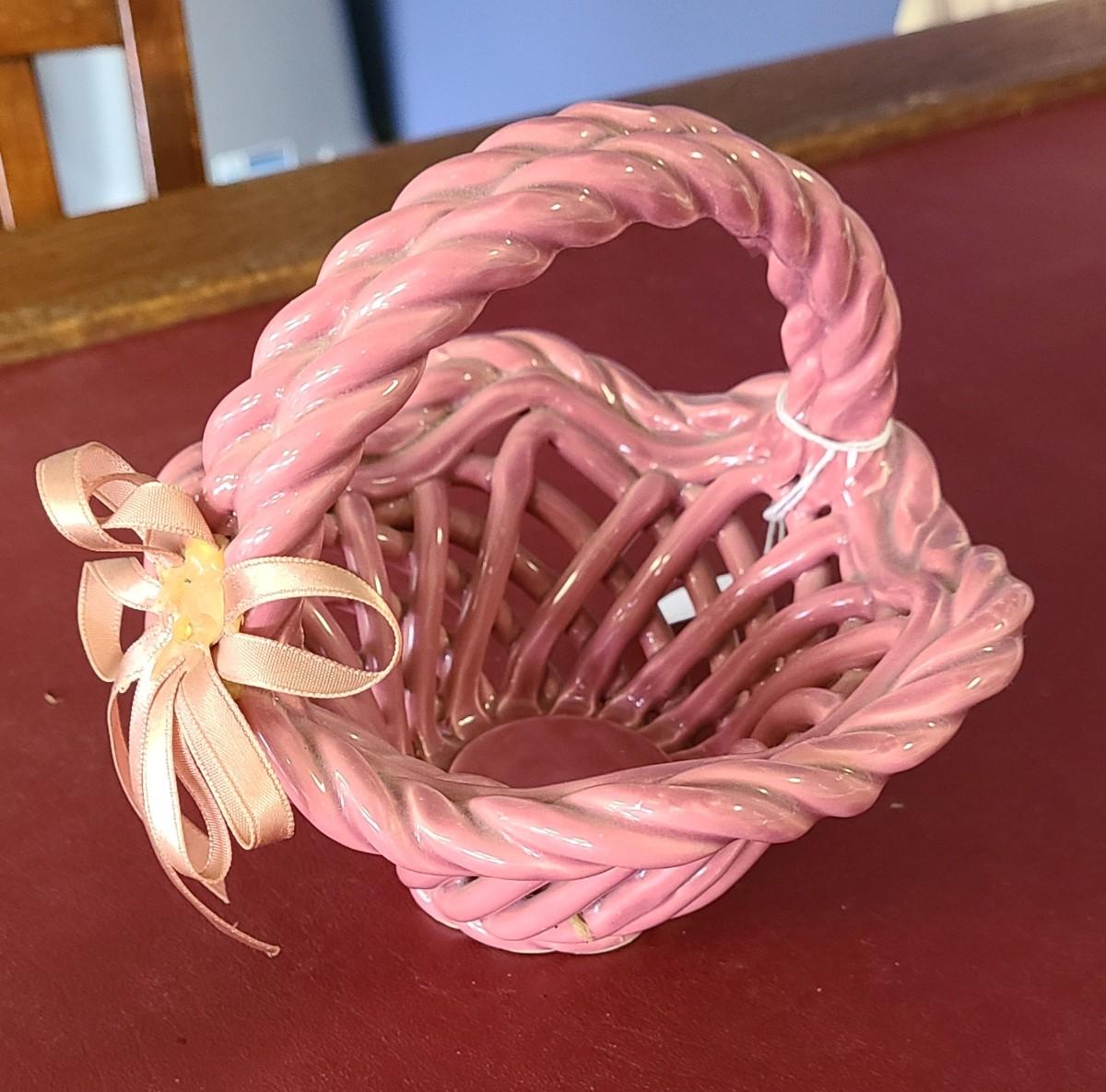 Small Pink Clay Basket - Hand Woven - 6 inches tall
