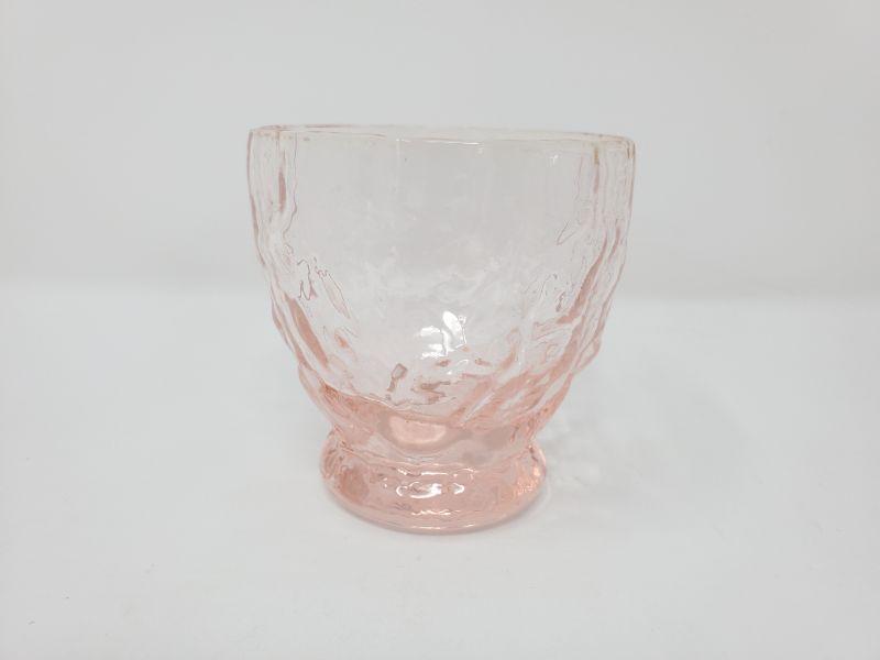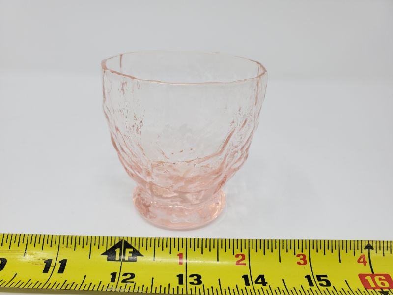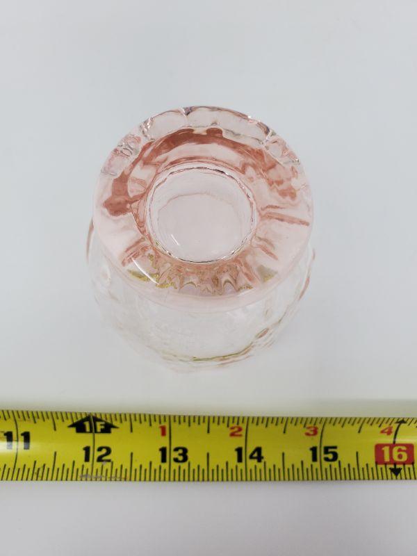 Unmarked, good condition and approximately 2.75in tall. Color is pale pink