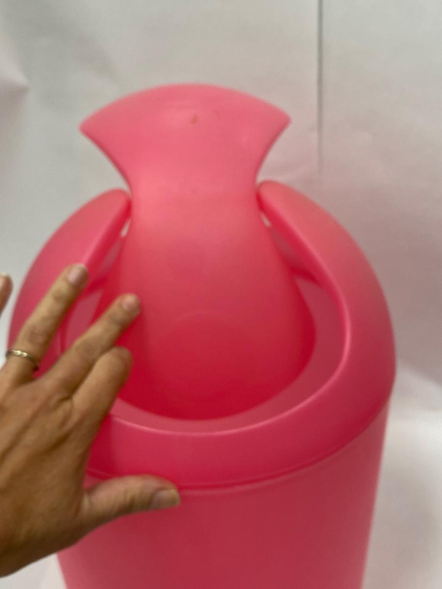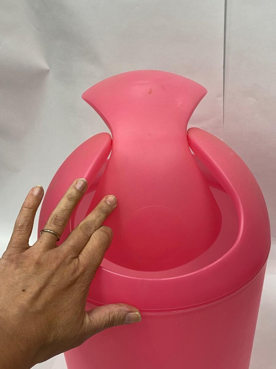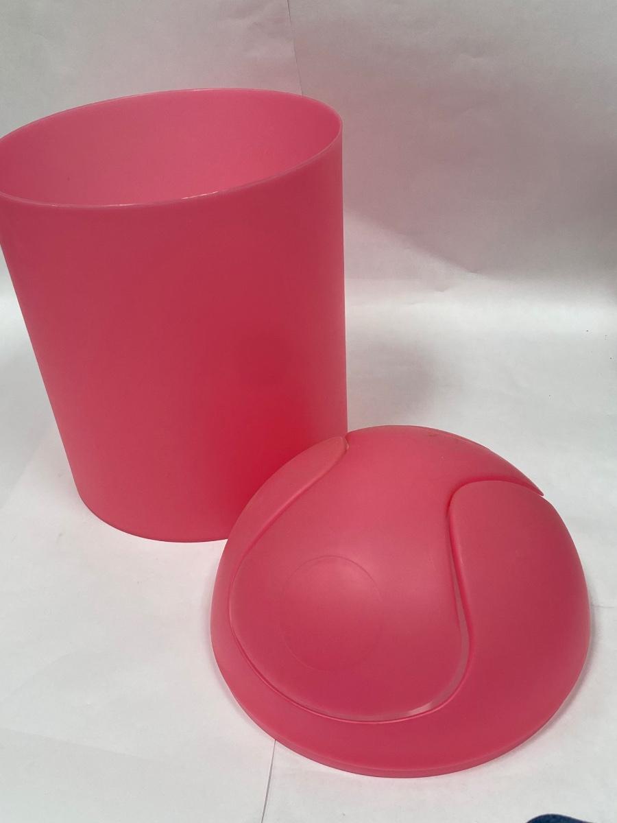 Small Pink Plastic Trash Can Bin with Lid. Good condition.