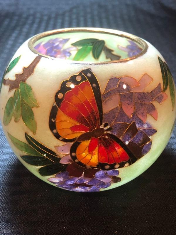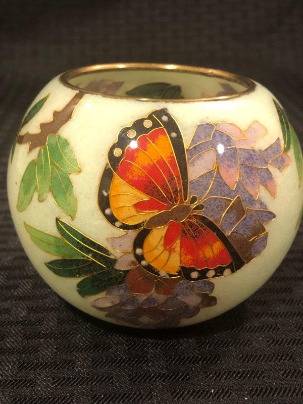 Beautiful small round Plique-A-Jour cloisonné vase by William Yee.
